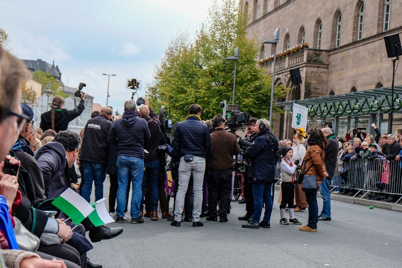 | Beschreibung | Presserummel um den Besuch des Bay. Ministerpräsidenten Söder am Erntedankfestzug zur Fürther Kärwa, Okt. 2019 | ||