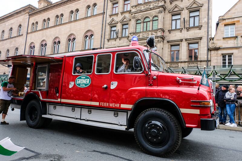 | Beschreibung | Brauerei Grüner auf dem Erntedankfestzug zur Fürther Kärwa, Okt. 2019 | ||