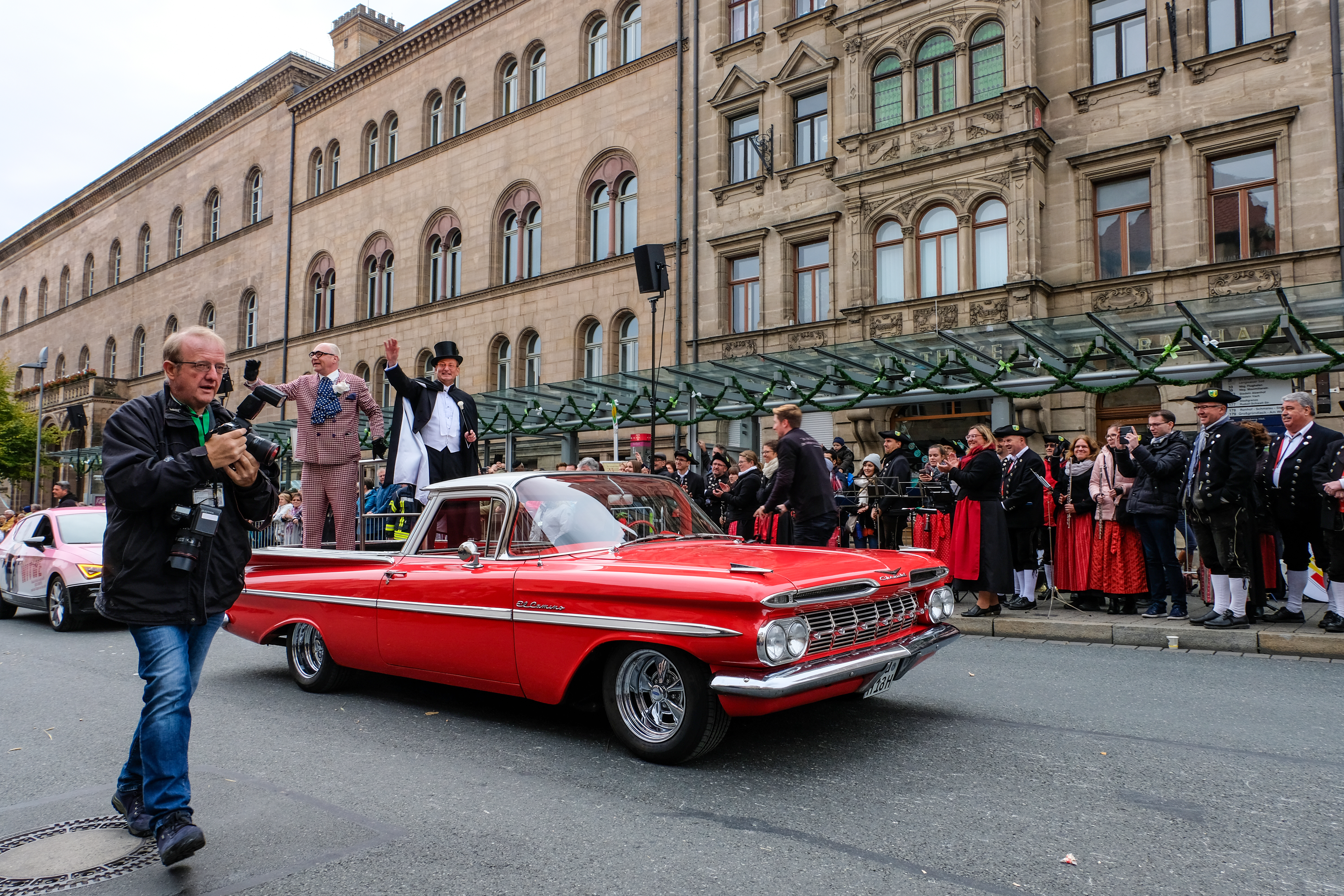 | Beschreibung | Martin Rassau und Volker Heißmann am Erntedankfestzug zur Fürther Kärwa, Okt. 2019 | ||