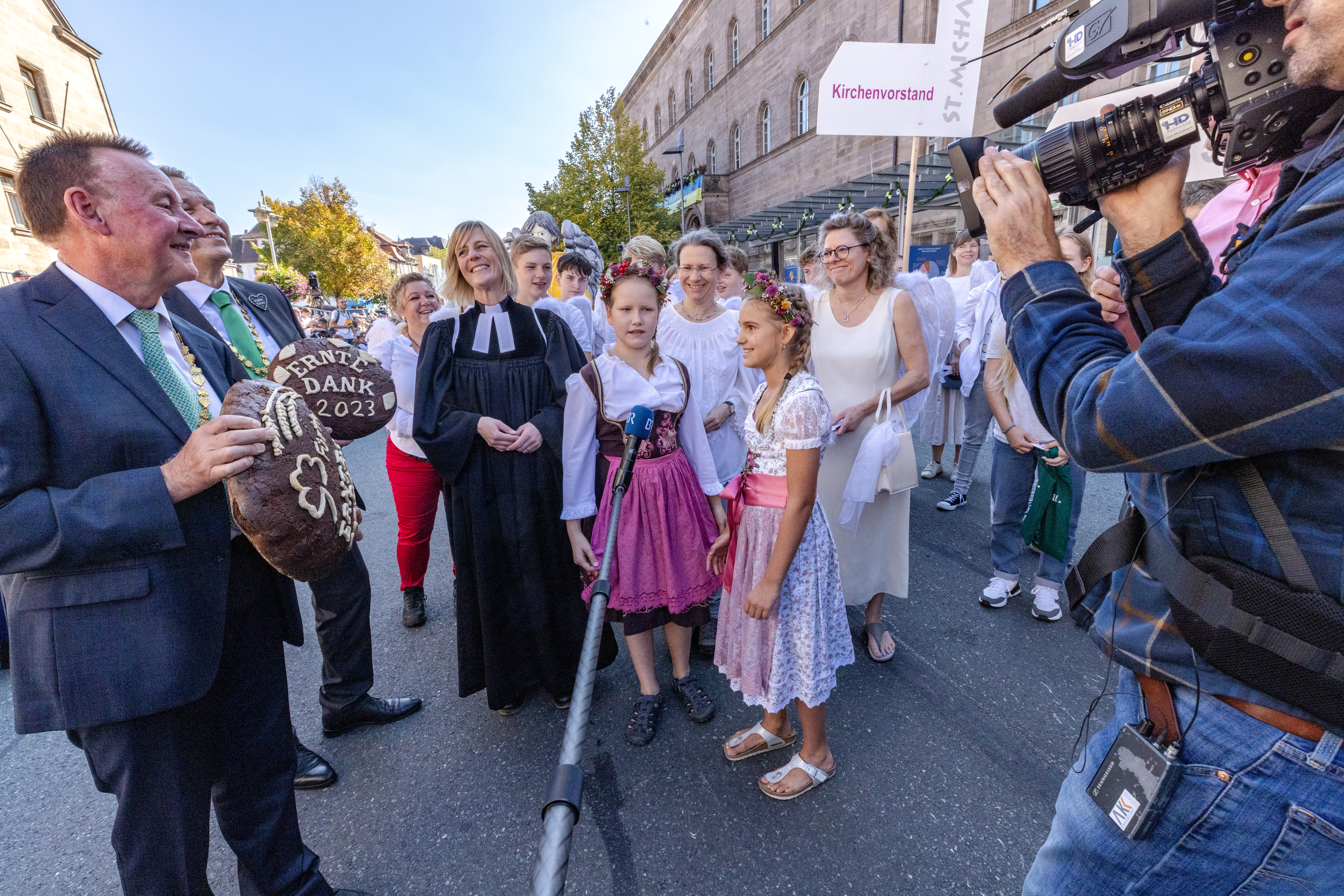| Beschreibung | Erntedankfestzug 2023 - Brotübergabe an die Pfarrerin Stefanie Schardien von St. Michael, Okt. 2023 | ||