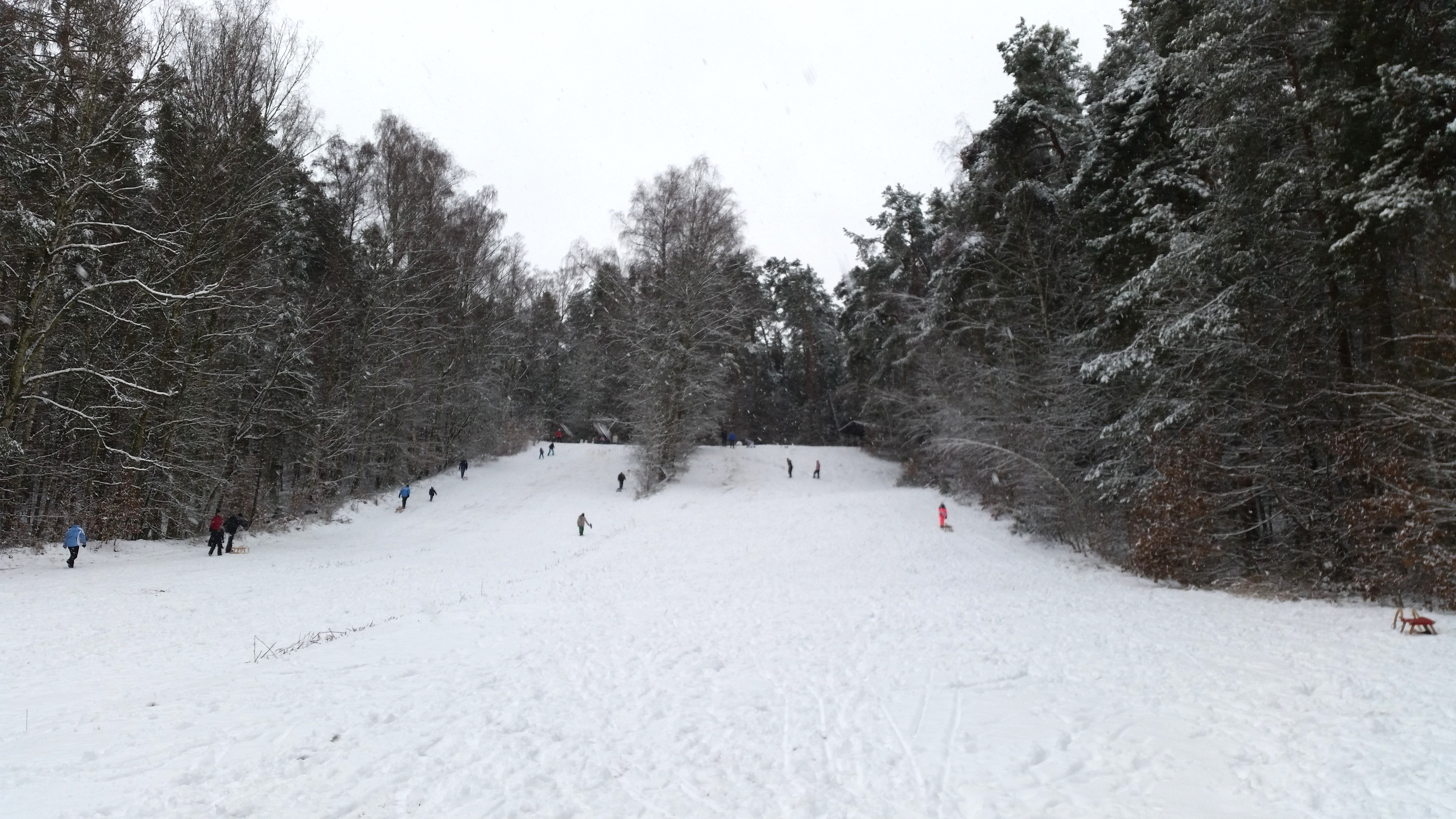| Beschreibung | Winterbetrieb am Rodelhügel Eschenaubuck im Stadtwald westlich der Eschenau-Siedlung. | ||