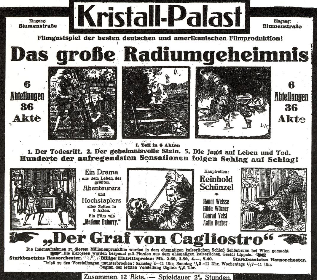 Anzeige zur Eröffnung des Kristallpalasts im Nov. 1921 Erstellungsdatum: November 1921<br>Lizenz: cc-by-sa-3.0