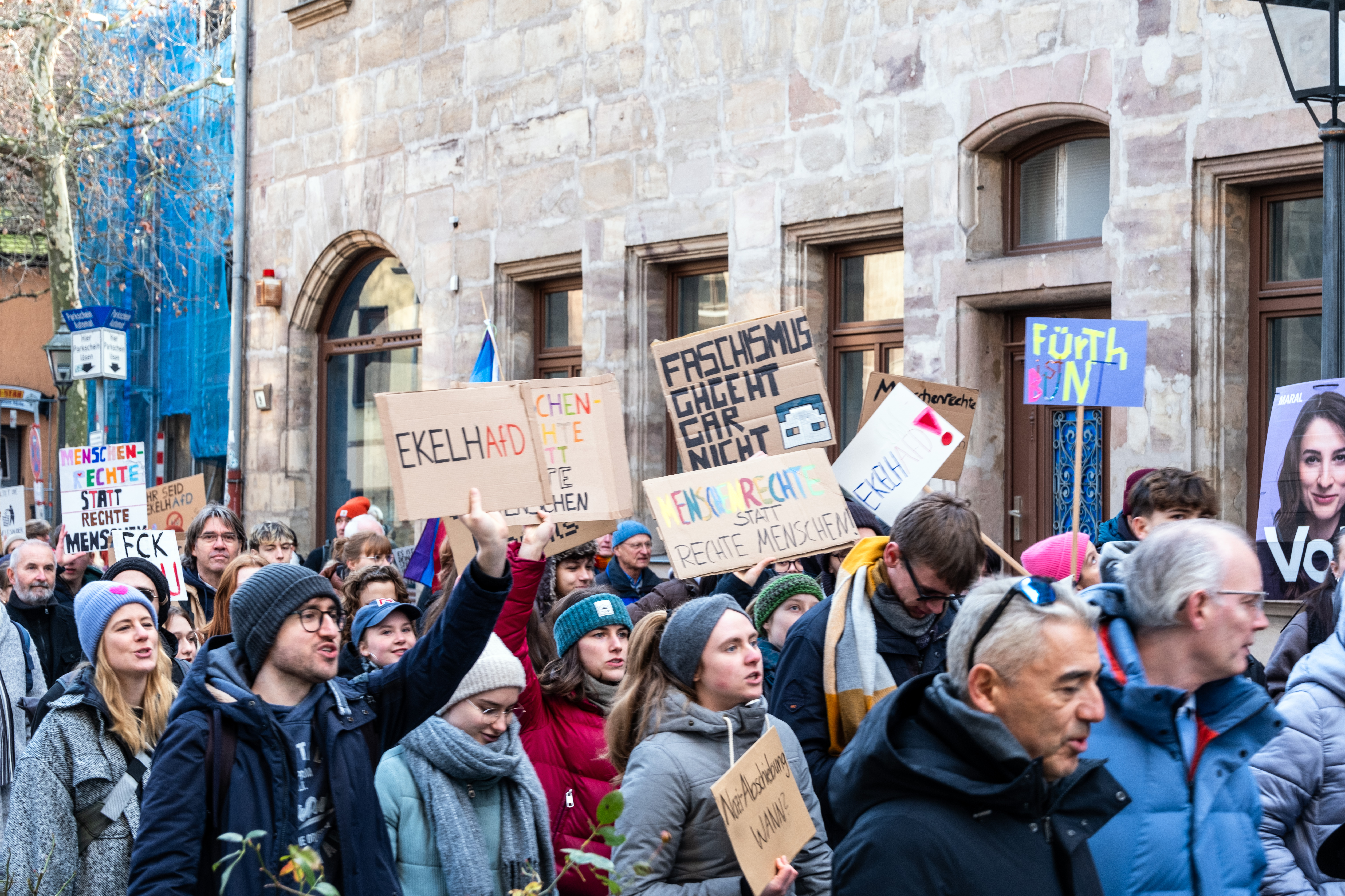 | Beschreibung | Demonstration Fürth bleibt stabil - 8. Februar 2025 - hier in der Gustavstraße auf dem Weg zum Grünen Markt, Feb. 2025 | ||