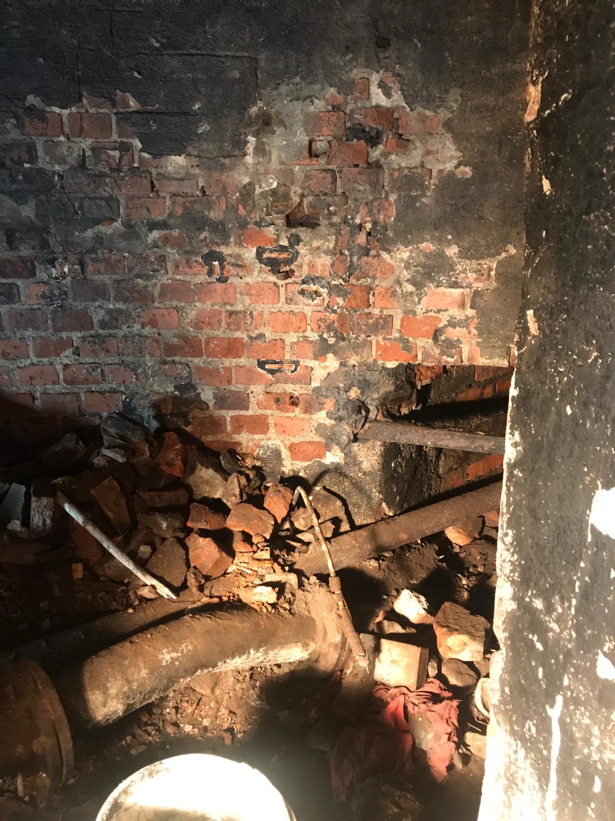 | Beschreibung | Blick in den wiederentdeckten „Bunker“ auf dem Areal der ehem. Wolfsgrubermühle, Juli 2020 | ||