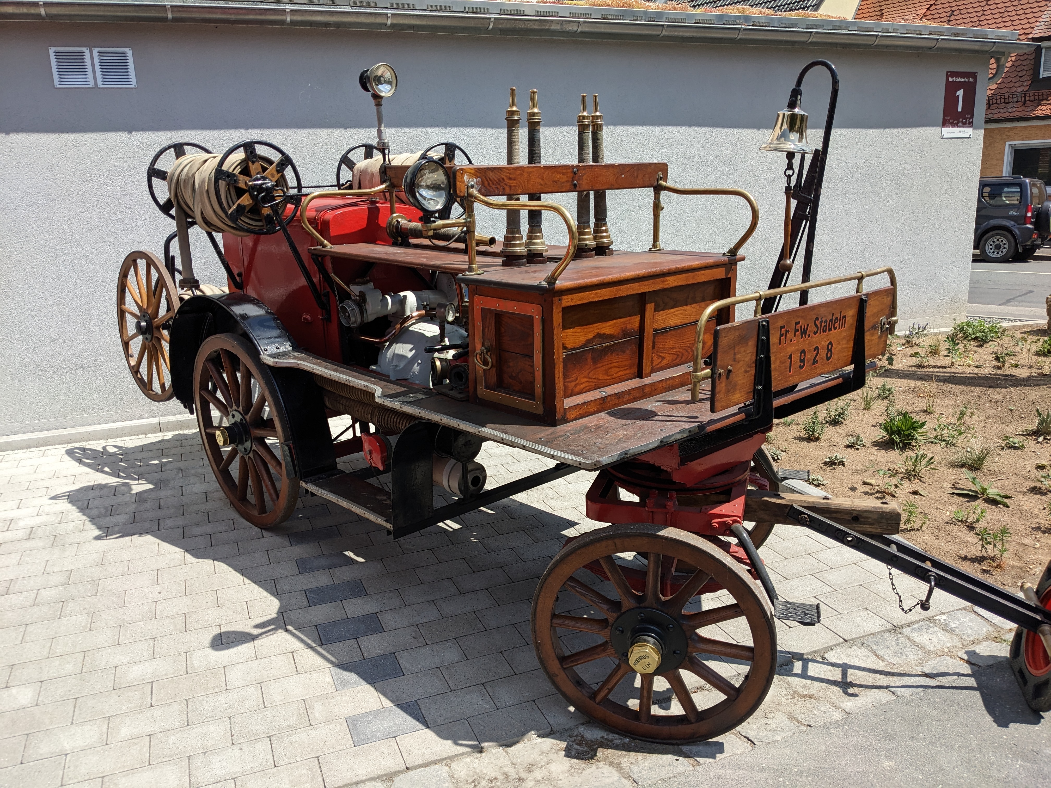 | Dateiinfo (Bild-Unterschrift und Info-Box, automatisch erstellt) | Motorspritze Magirus Trossingen der Freiwilligen Feuerwehr Stadeln, 2023 Urheber: Web Trefoil<br>Erstellungsdatum: 17. Juni 2023<br>Über Datum: 1928<br>Lizenz: cc-by-sa-3.0 | ||