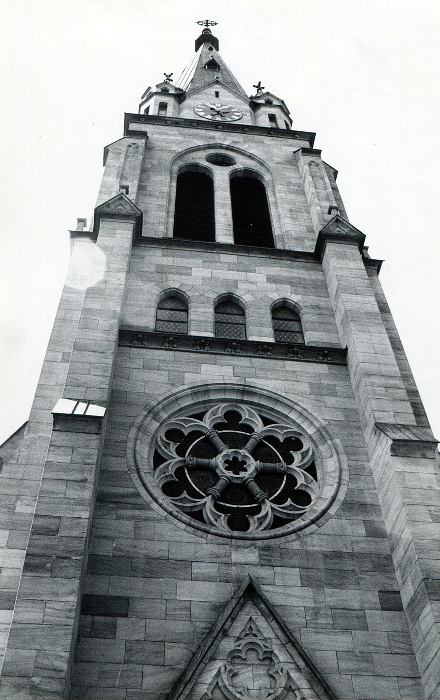 | Beschreibung | Kirche St. Paul in der Südstadt mit Rosette im Turm, 1987 (Mit freundlicher Genehmigung der Fürther Nachrichten) | ||