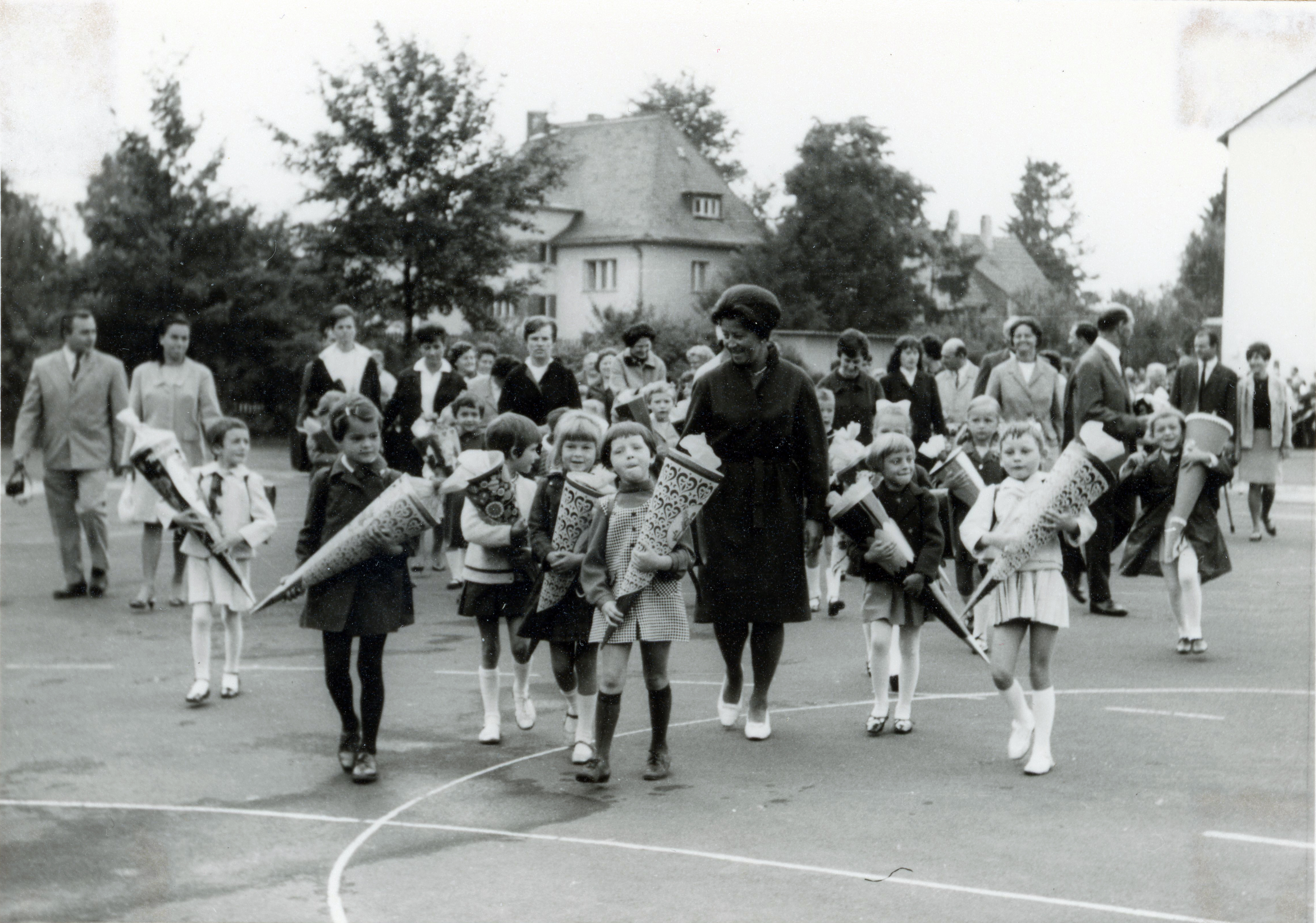 | Beschreibung | Einschulung in die Grundschule Friedrich-Ebert-Straße mit der Lehrerin "Frl. Scheuerer", Sept. 1967 | ||