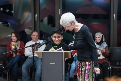 | Dateiinfo (Bild-Unterschrift und Info-Box, automatisch erstellt) | Buchpräsentation FZF-Schreibprojekt mit Migrant/innen Urheber: Tanja Elm<br>Erstellungsdatum: 6. Dezember 2018<br>Lizenz: copyright | ||