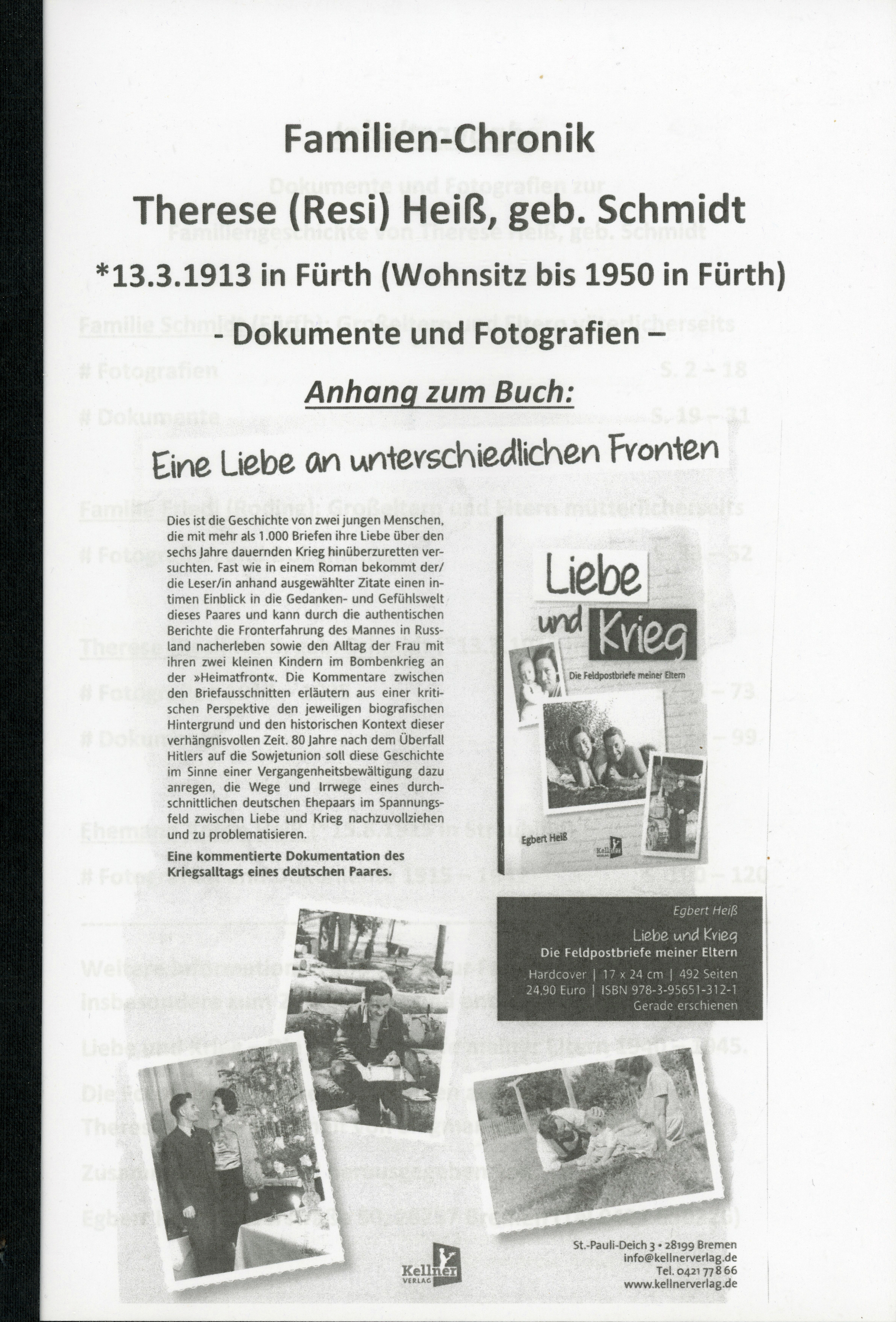 Titelseite: Familien-Chronik Therese (Resi) Heiß, 2022 Urheber: Egbert Heiß<br><br>Lizenz: copyright