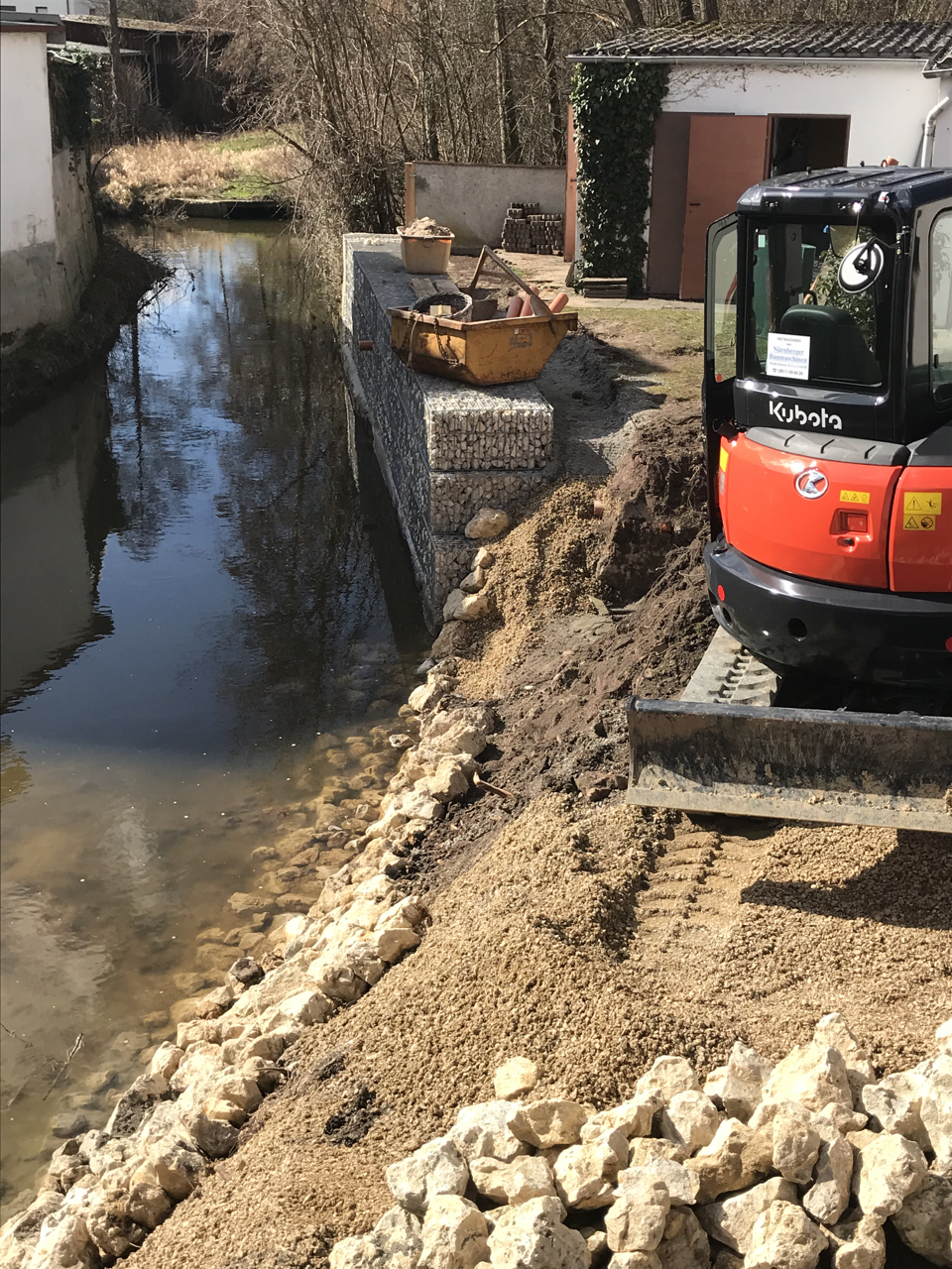 Bauarbeiten an der Abflussengstelle oberhalb der Regelsbacher Brücke, März 2019