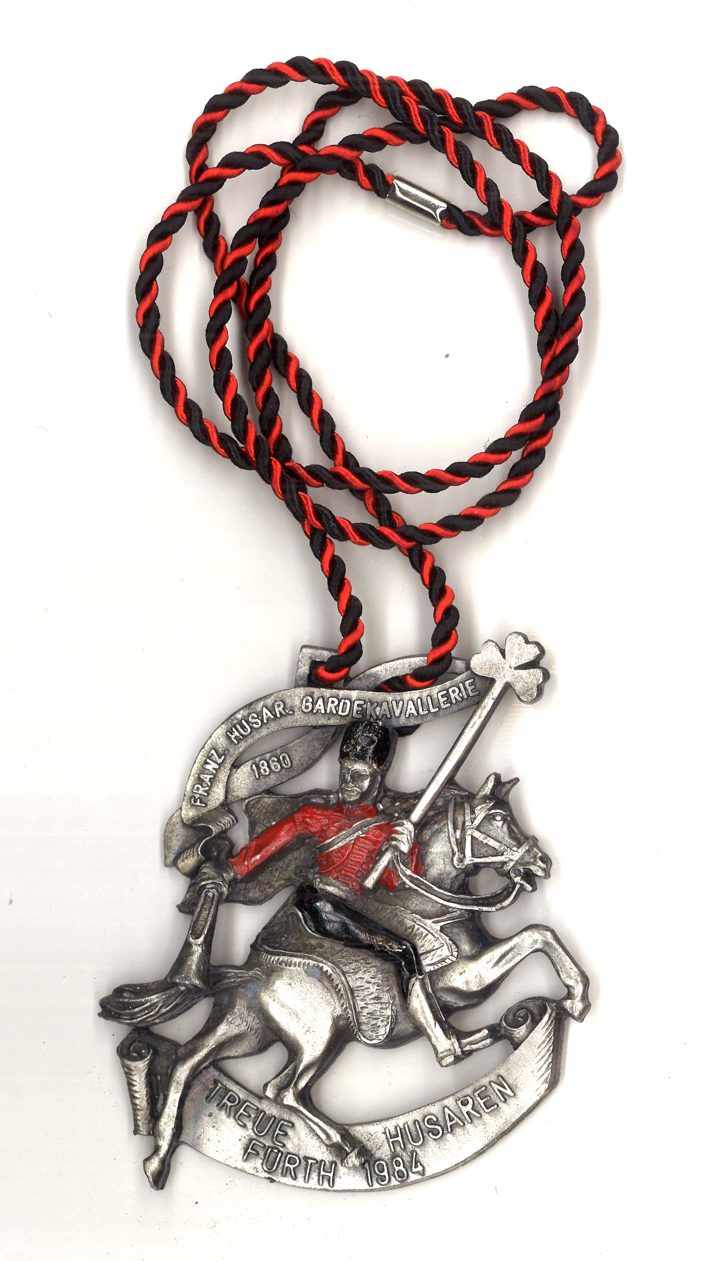 | Dateiinfo (Bild-Unterschrift und Info-Box, automatisch erstellt) | Sessionsorden der THF, Saison 1984, Metall, Motiv „Französische Husaren Gardekavallerie 1860“ Urheber: Treue Husaren Fürth<br>Erstellungsdatum: 1984<br>Lizenz: cc-by-sa-3.0 | ||