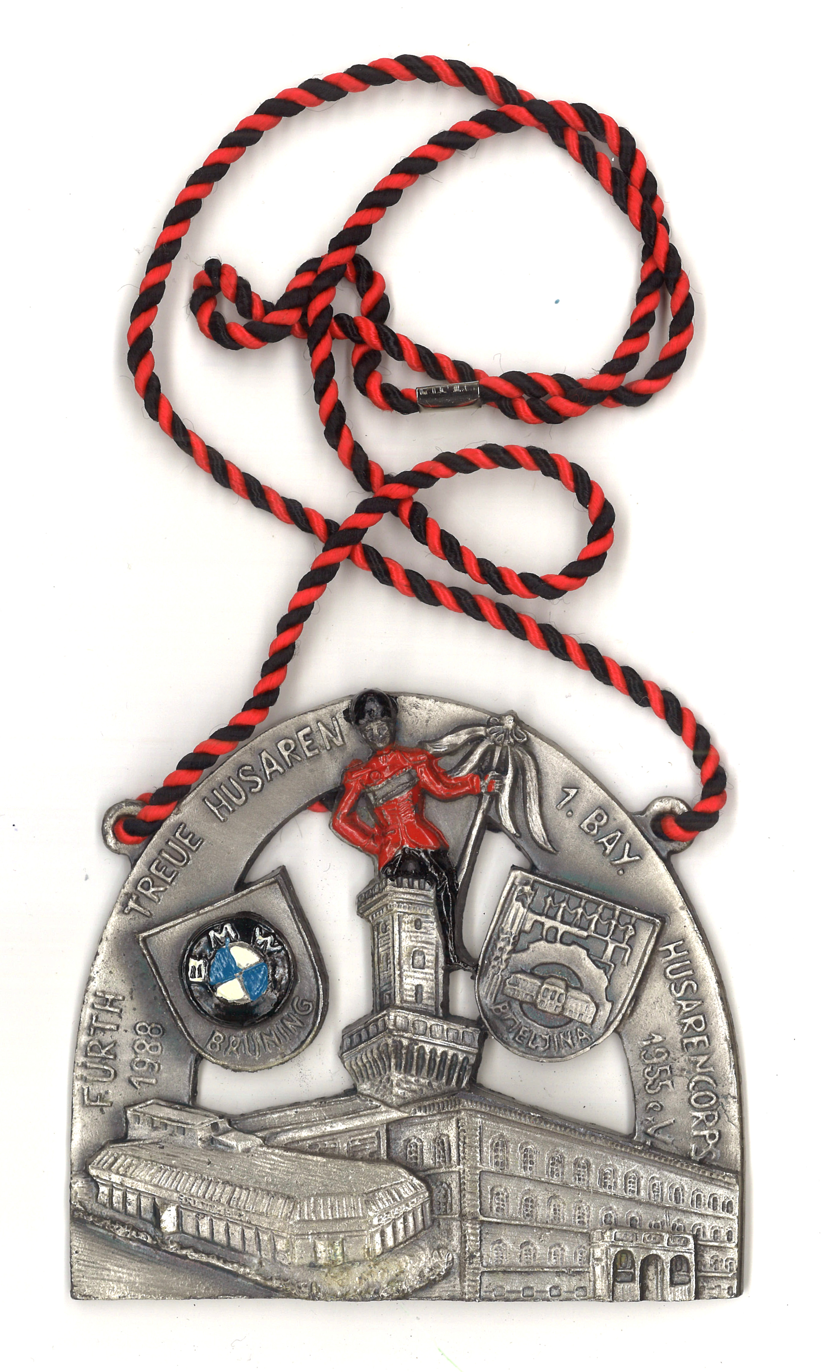 | Dateiinfo (Bild-Unterschrift und Info-Box, automatisch erstellt) | Sessionsorden der THF, Saison 1988, Metall, Motiv „Autohaus Brüning & Partnerstadt Bijeljina“ Urheber: Treue Husaren Fürth<br>Erstellungsdatum: 1988<br>Lizenz: cc-by-sa-3.0 | ||