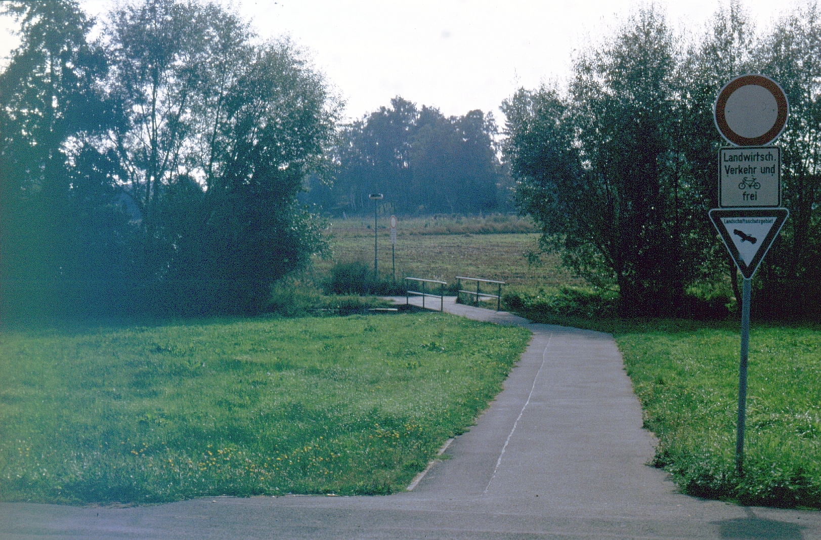 Neben der Mühltalstraße überquert eine Wegbrücke den Farrnbach (1992) Urheber: Bernd Jesussek<br><br>Lizenz: CC BY-SA 4.0