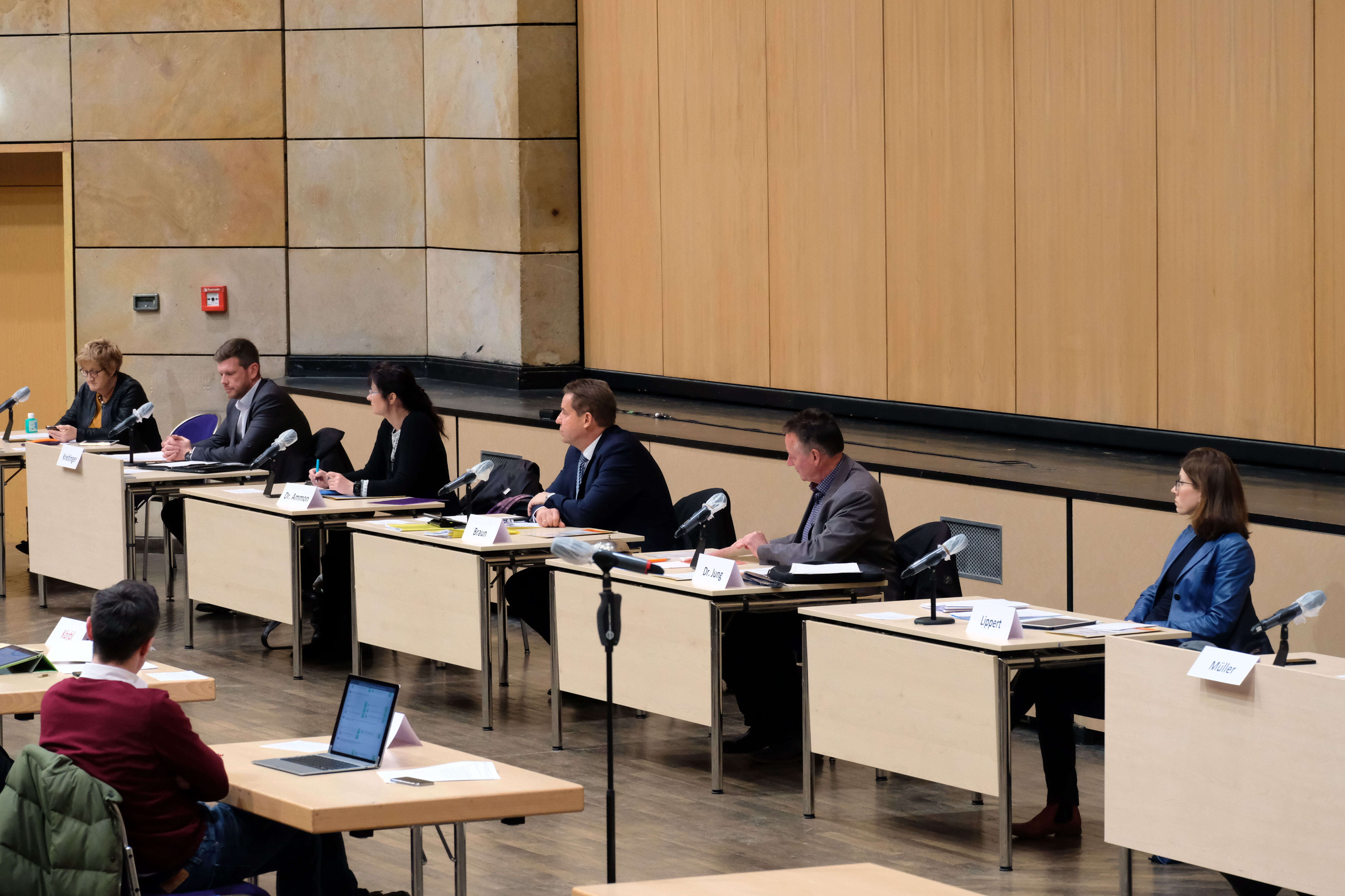 | Beschreibung | Die Referenten während des sog. Ferienausschusses des Stadtrates in Zeiten der COVID-19-Pandemie, März 2020 | ||