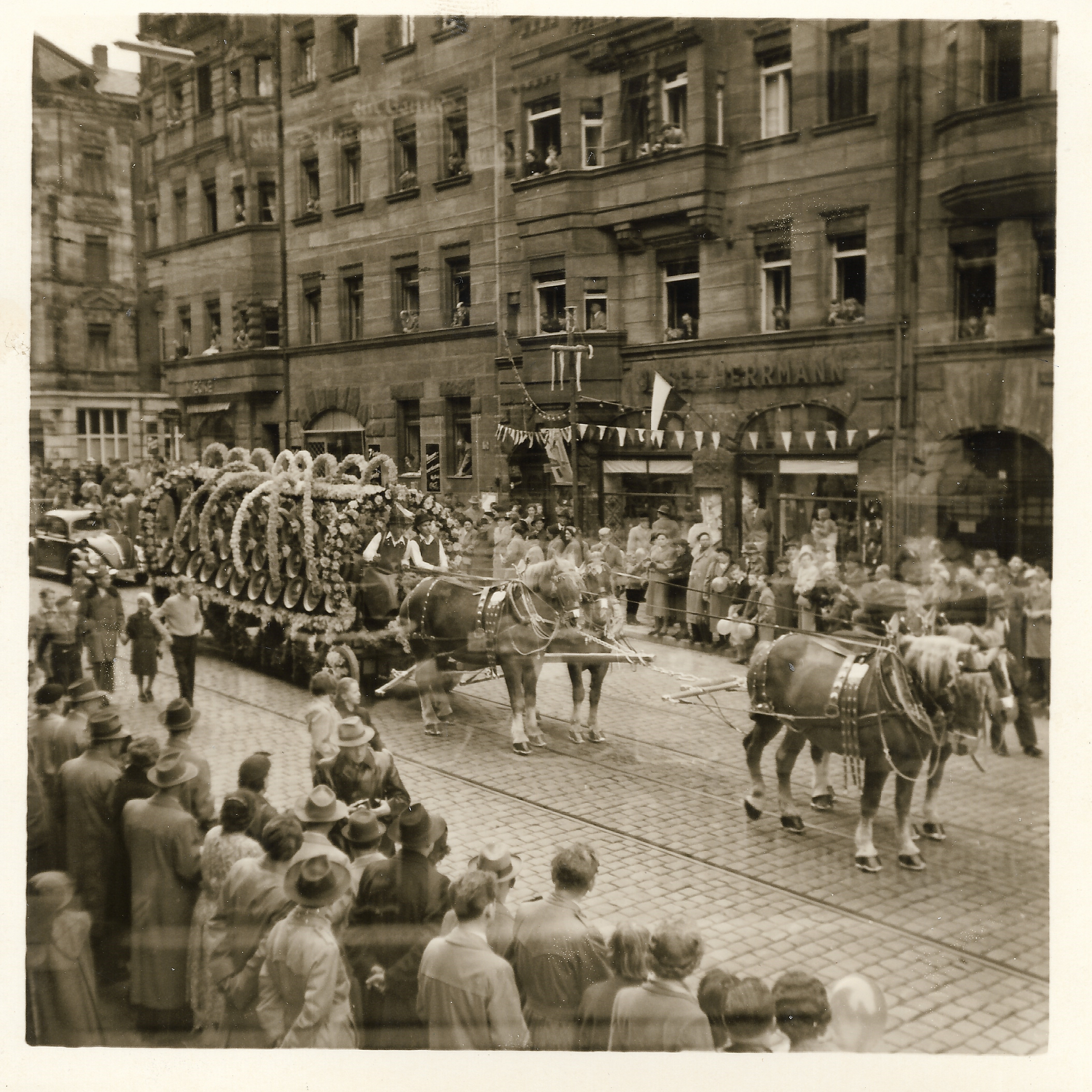 BeschreibungErntedankfestzug in der Schwabacher Straße, 1956
