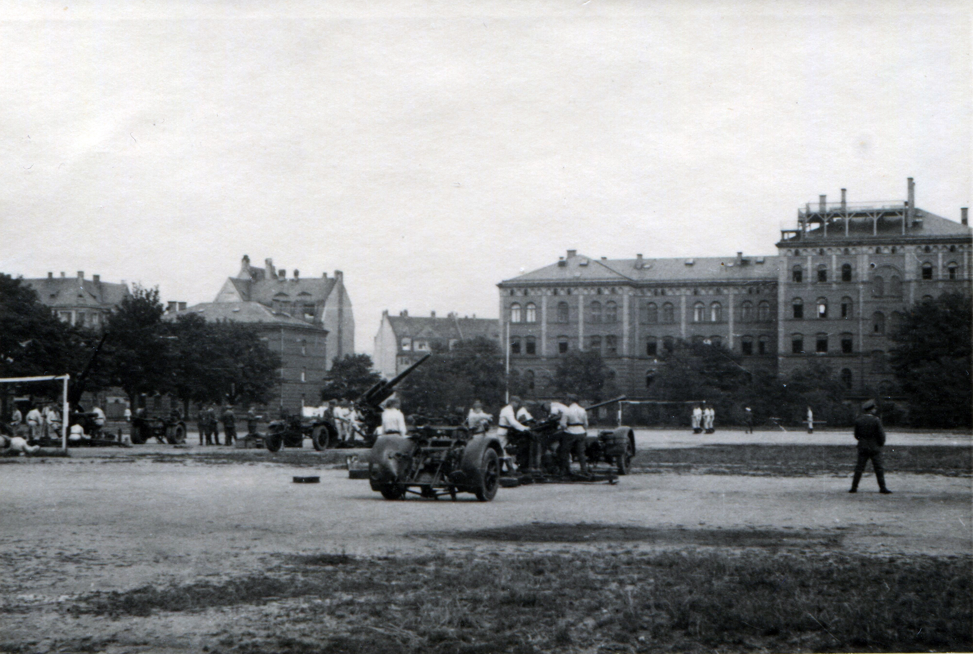 | Dateiinfo (Bild-Unterschrift und Info-Box, automatisch erstellt) | Ausbildung in der Artilleriekaserne, um 1936/38 Urheber: unbekannt<br>Erstellungsdatum: 1938<br>Lizenz: cc-by-sa-3.0 | ||