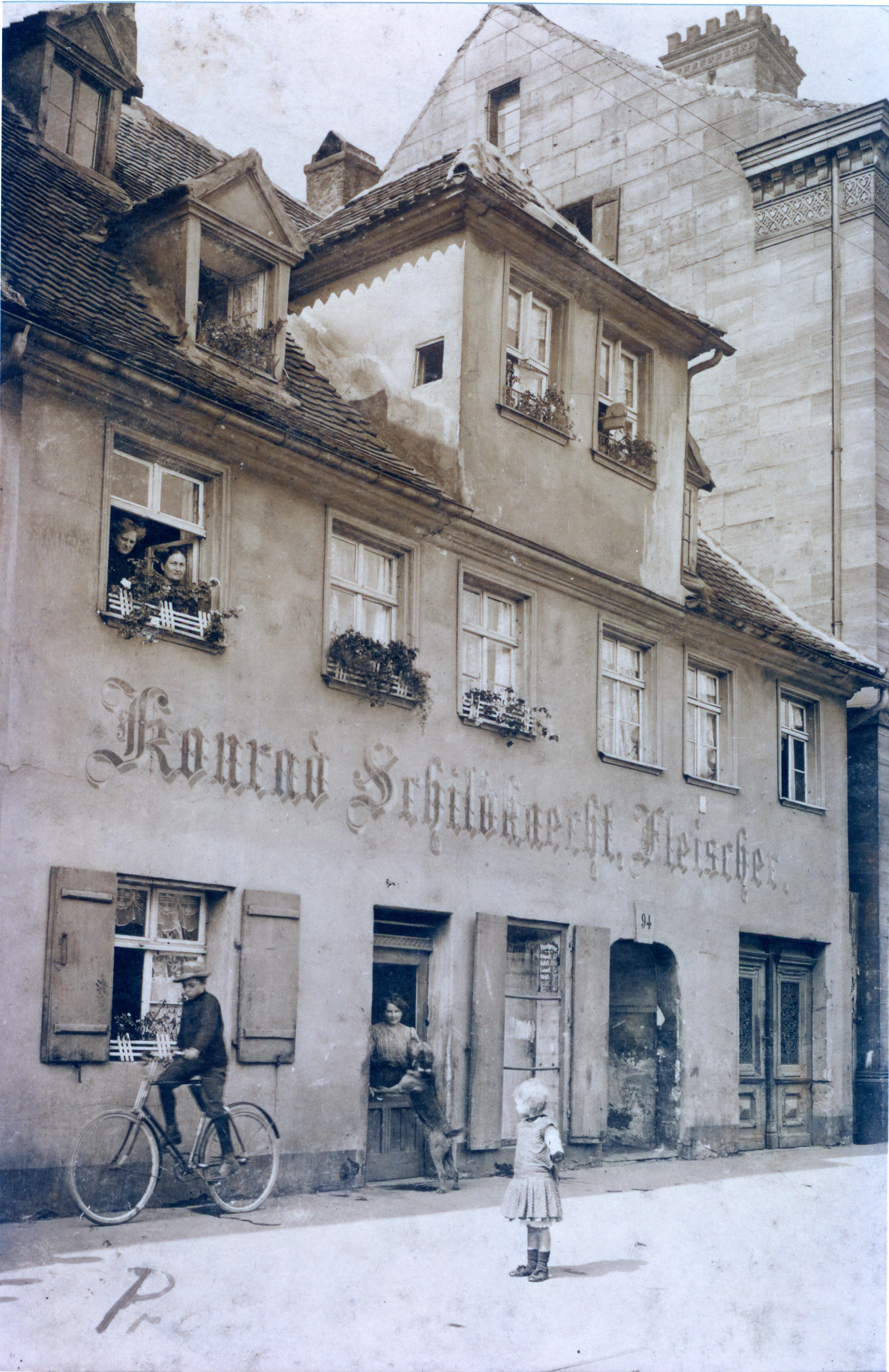 | Beschreibung | Fleischerei Konrad Schildknecht, Königstraße 94 um 1900 | ||
