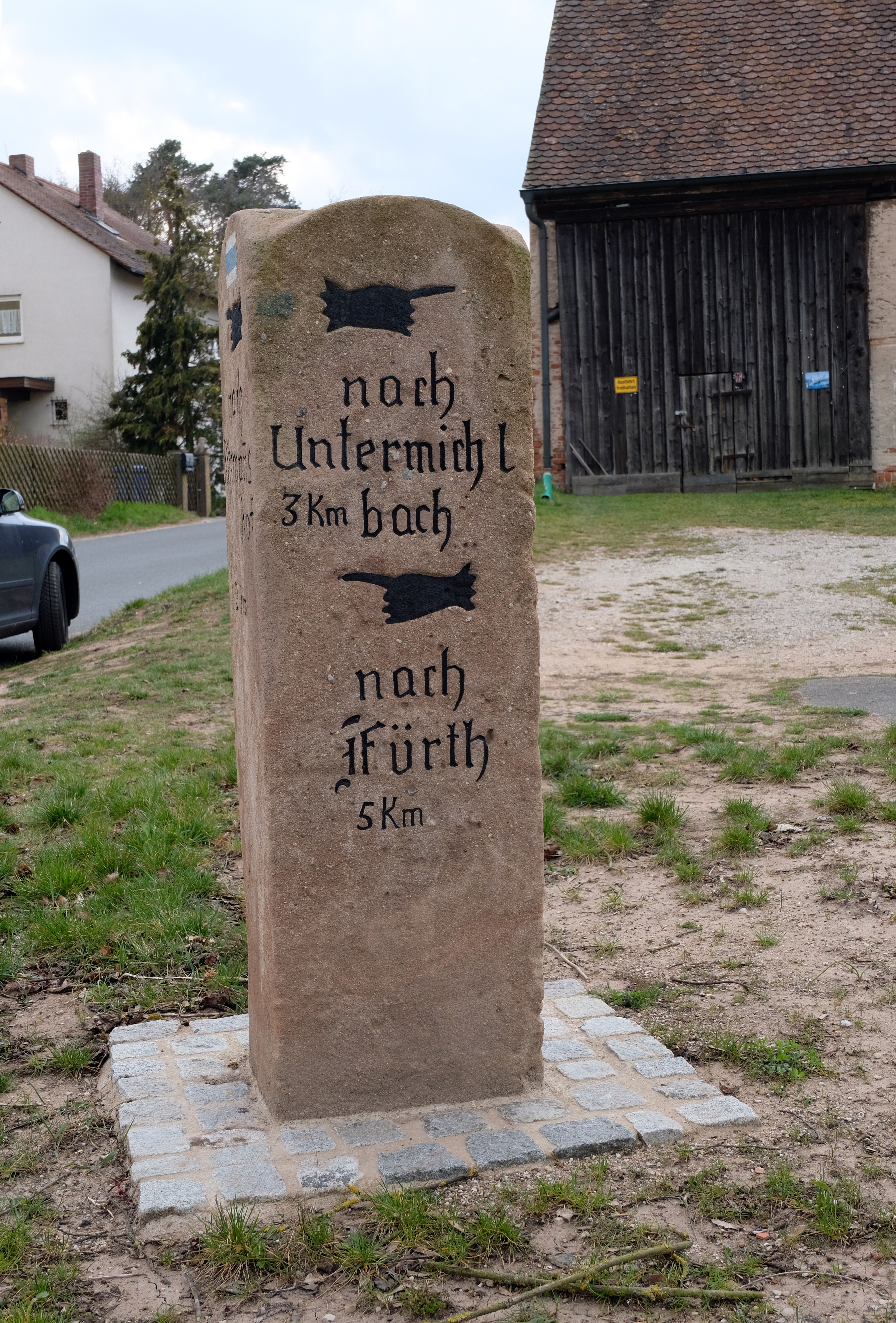 Die Sandsteinsäule als Wegweiser in Flexdorf nach Ritzmannshof, Untermichlbach oder Fürth, April ... Die Sandsteinsäule als Wegweiser in Flexdorf nach Ritzmannshof, Untermichlbach oder Fürth, April 2020<br>Urheber: Kamran Salimi<br>Erstellungsdatum: 3. April 2020<br>Lizenz: cc-by-sa-3.0