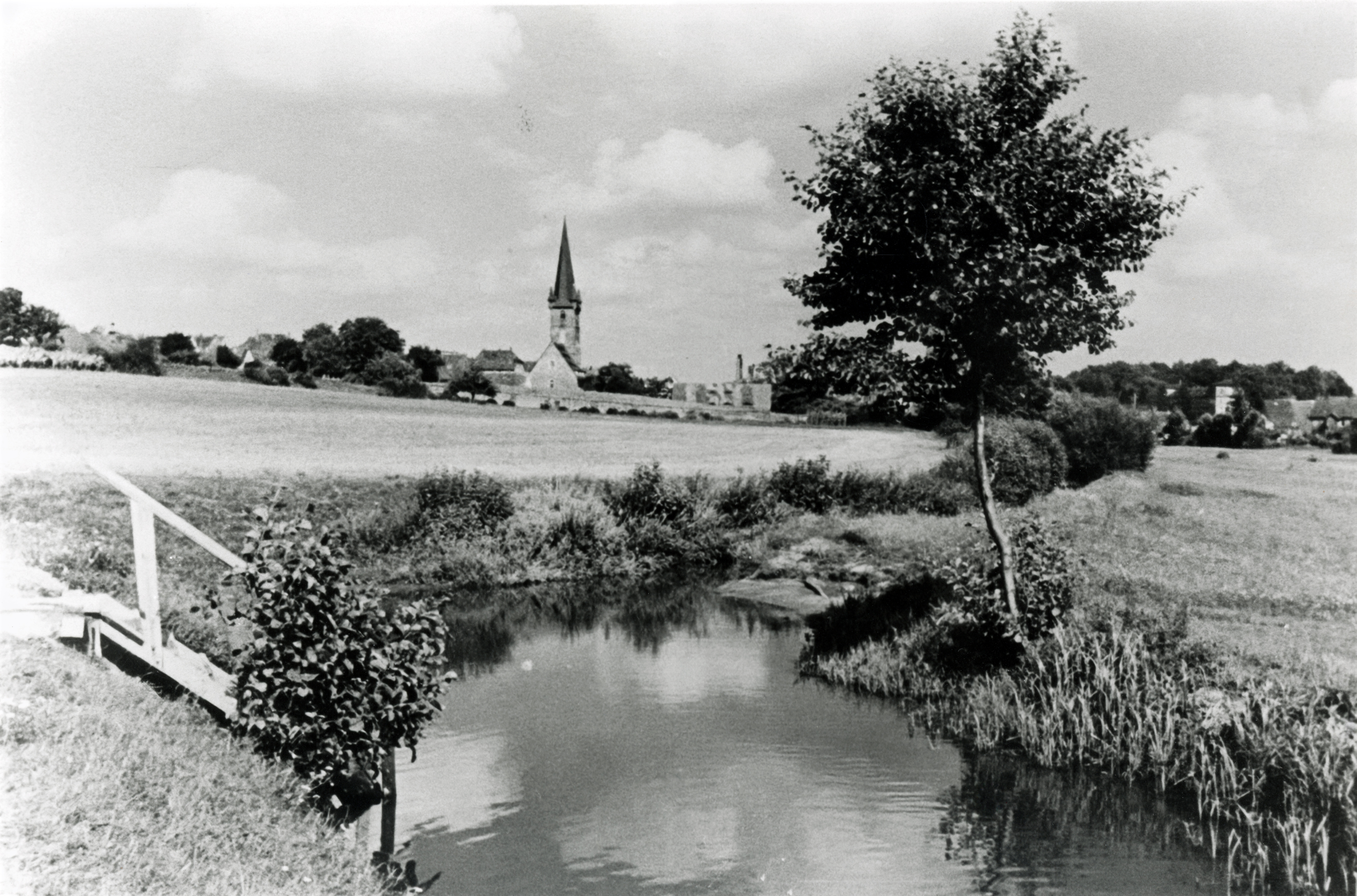 | Beschreibung | Badefreuden am Flussbad des Mühlbachs westlich von Burgfarrnbach. Im Hintergrund ist der Kirchturm von St. Johannis sowie der Schlot der gräflichen Brauerei zu erkennen, ca. 1920 | ||