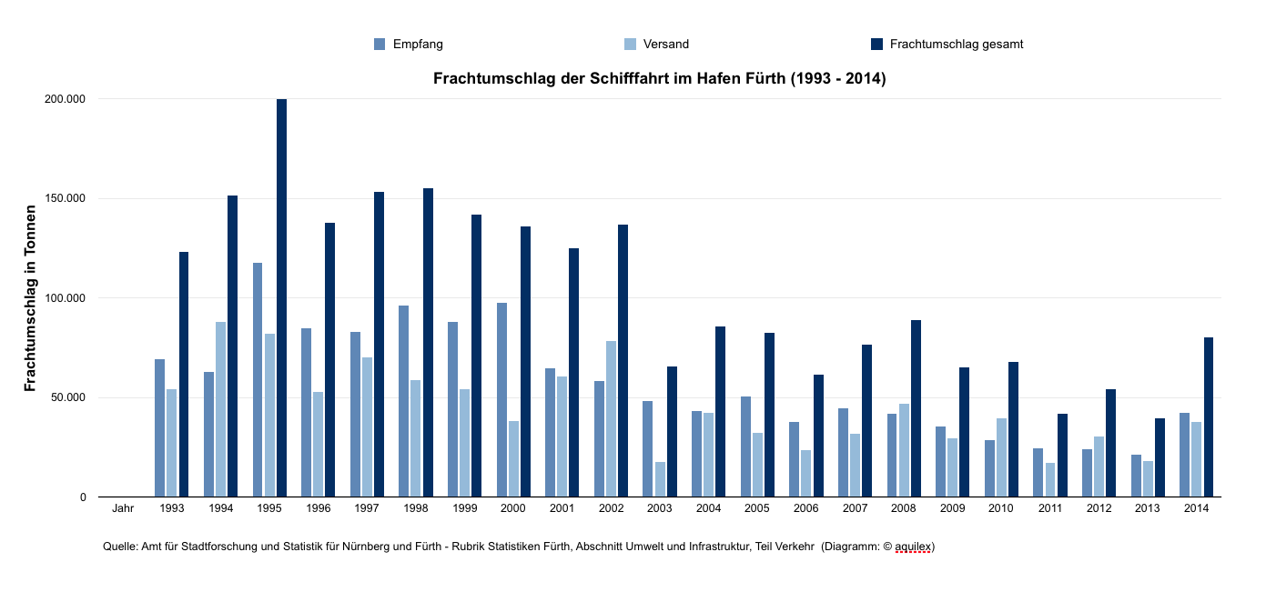 | Beschreibung | Frachtumschlag der Schifffahrt im Hafen Fürth von 1993 bis 2016 | ||