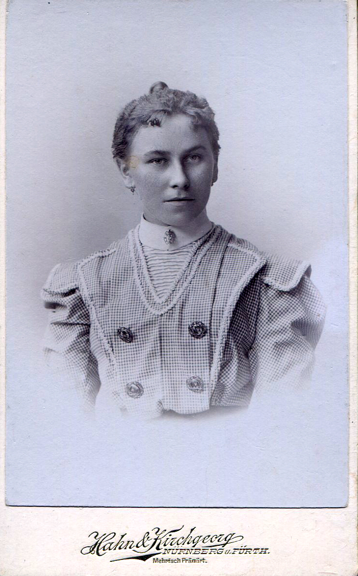 | Beschreibung | Junge Frau mit vielen Knöpfen, ca. 1890 | ||