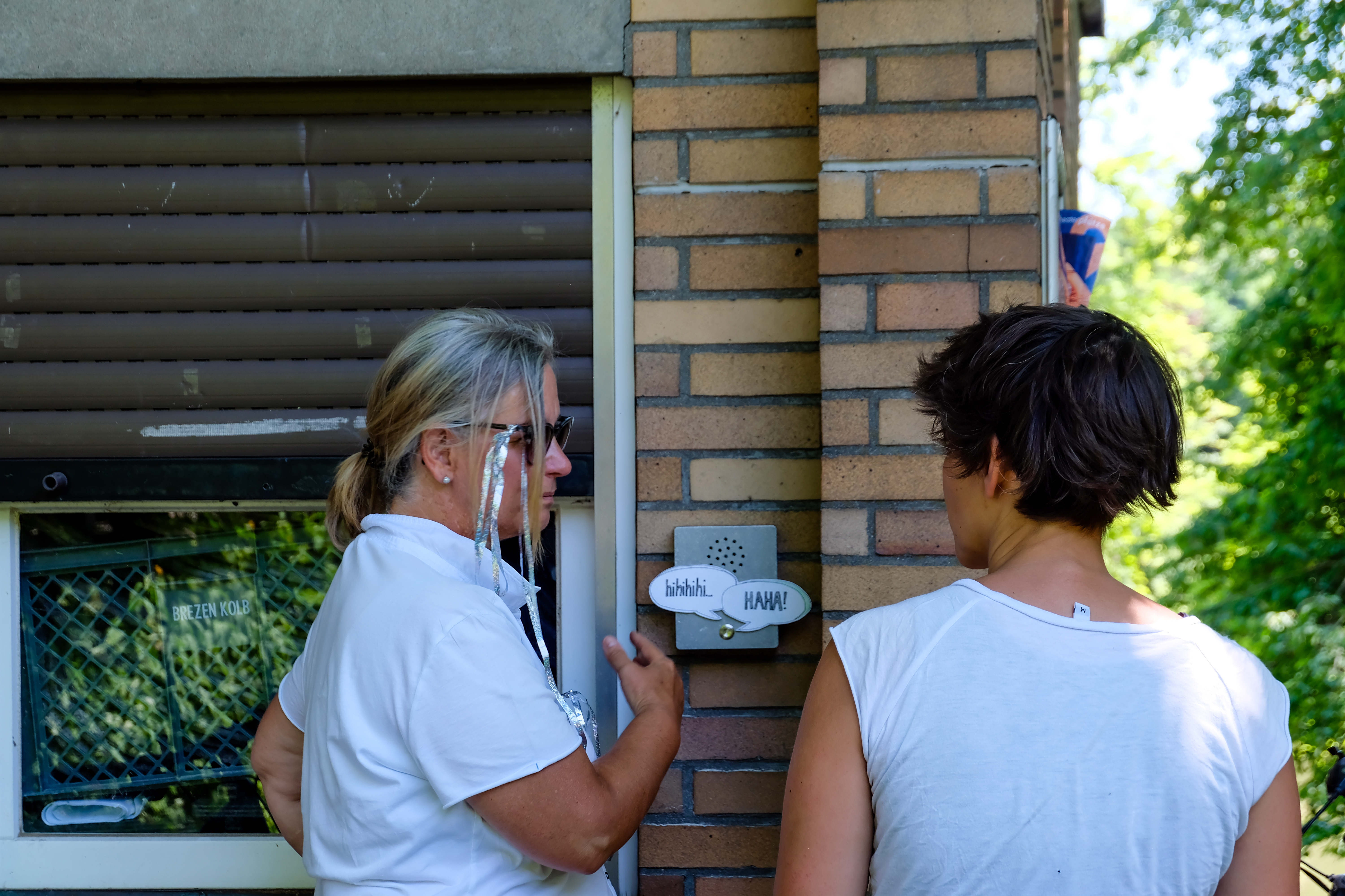 | Beschreibung | Kunstinstallation (Klingelstreich 2) von Anja Gemeinweiser (rechts im Bild) an der Freilichtbühne im Stadtpark während der Frei Luft Galerie 2023, Juni 2023 | ||