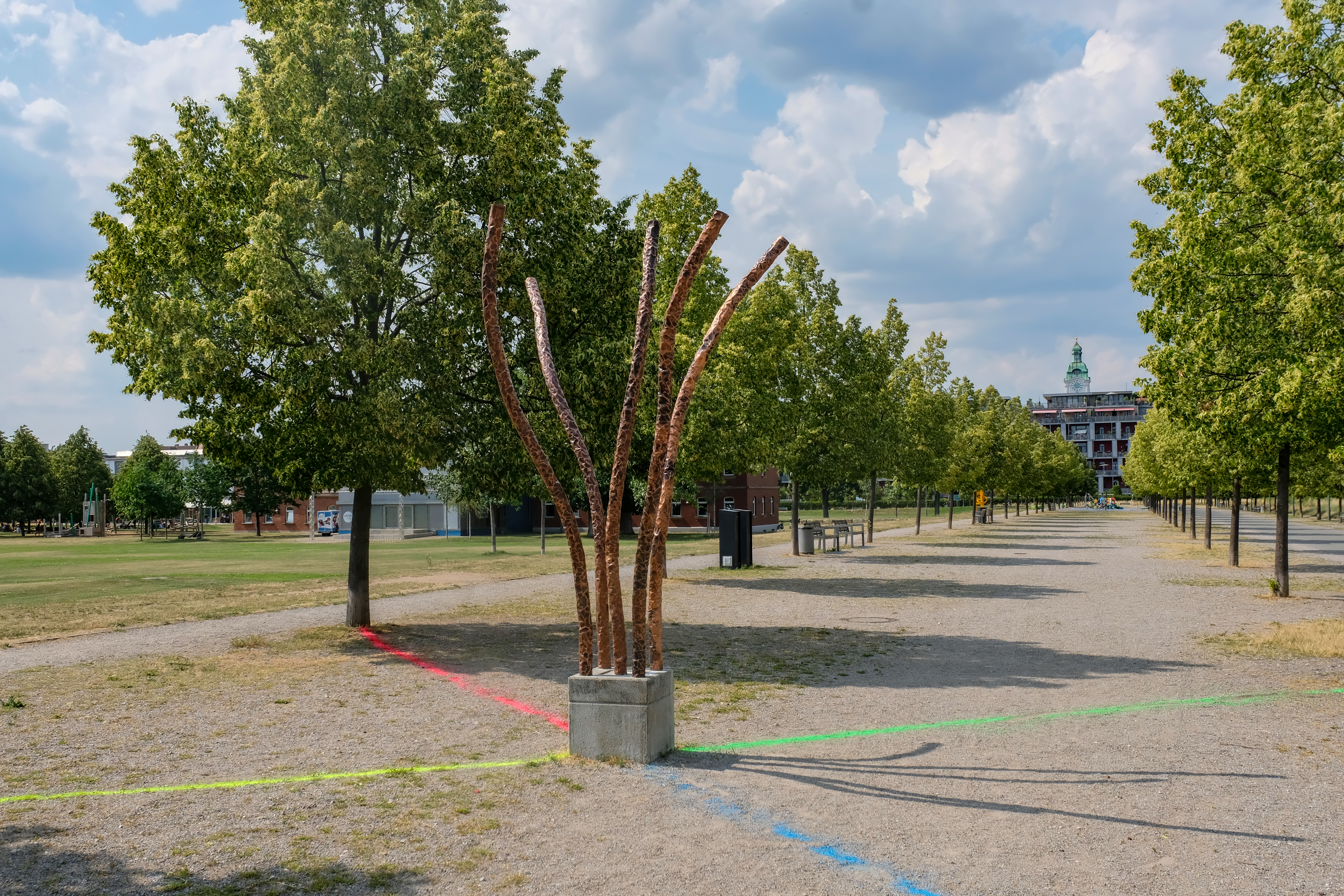 BeschreibungKunstinstallation (Verbindung) von Thomas Besenbeck im Südstadtpark während der Frei Luft Galerie 2023, Juni 2023