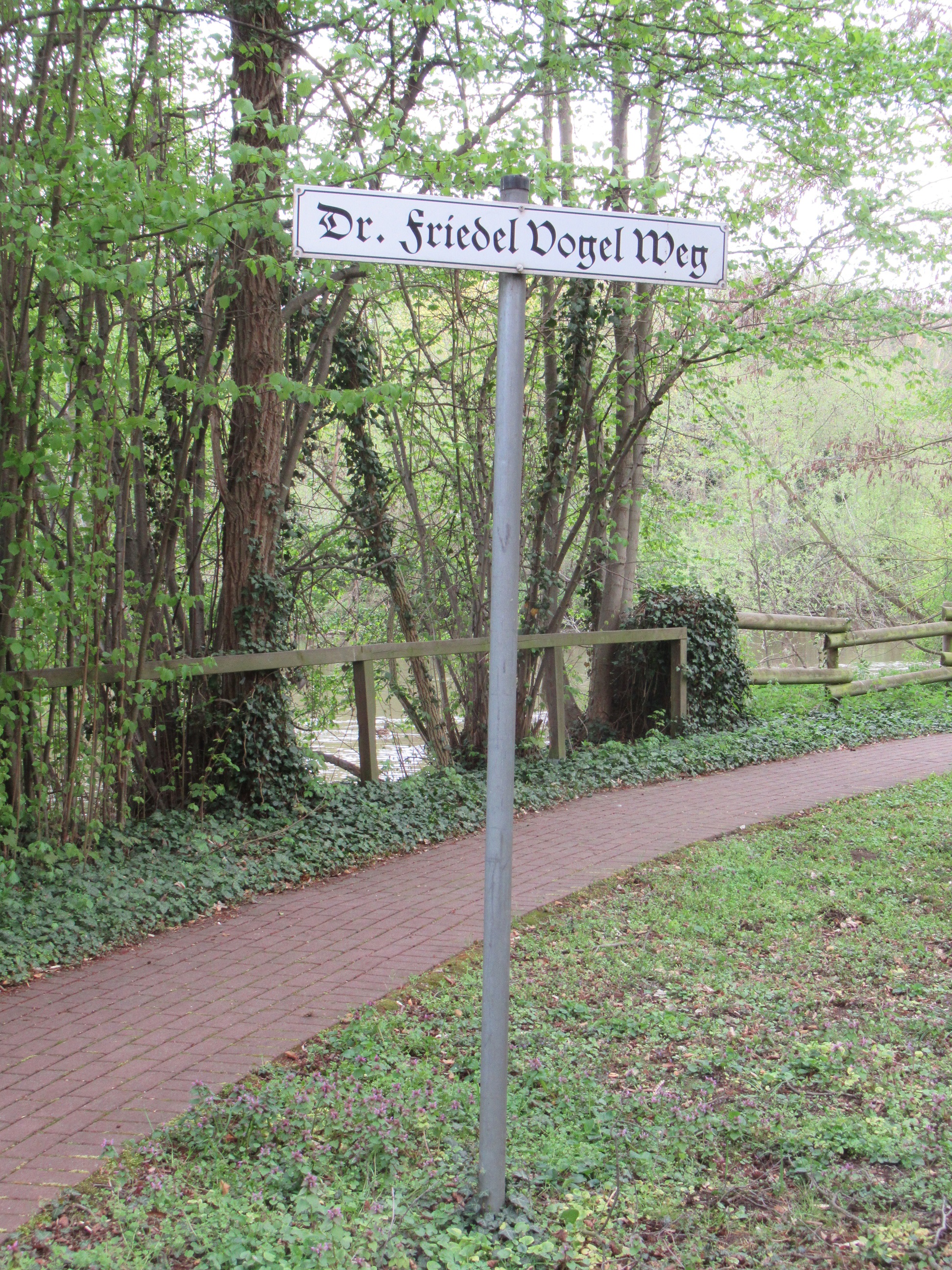| Dateiinfo (Bild-Unterschrift und Info-Box, automatisch erstellt) | Dr.-Friedel-Vogel-Weg auf dem Gelände der Kursana-Seniorenresidenz Urheber: Peter Frank<br>Erstellungsdatum: 3. Mai 2021<br>Lizenz: cc-by-sa-3.0 | ||