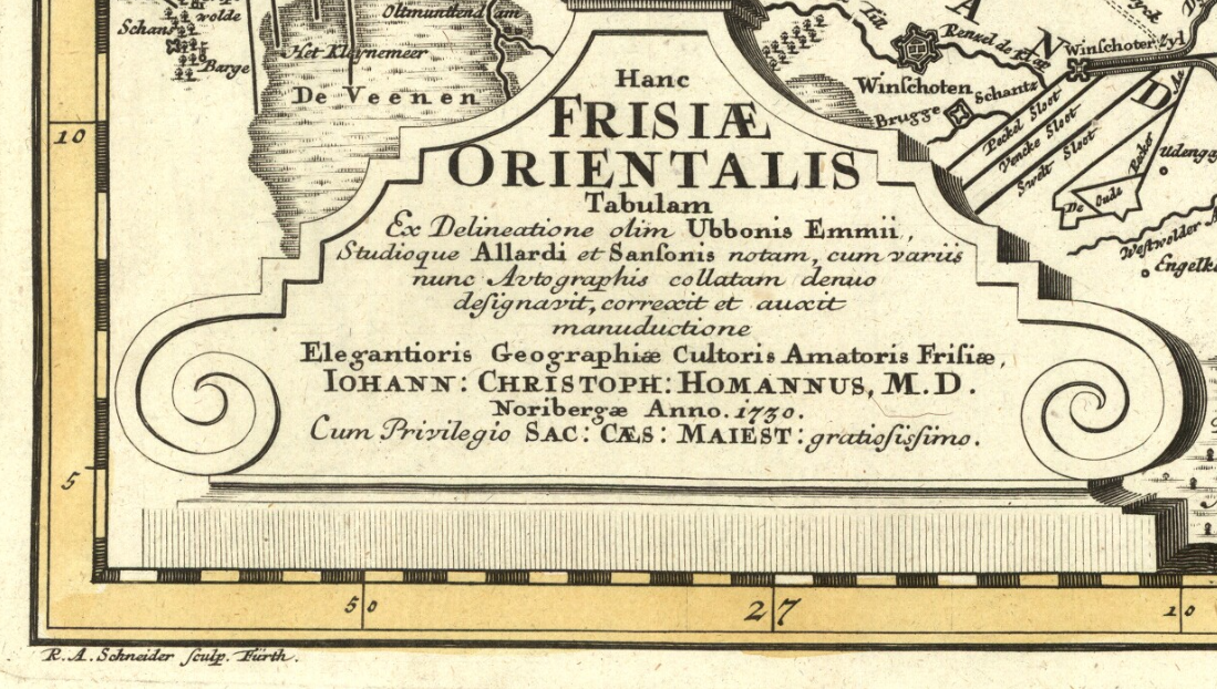 | Beschreibung | Ausschnitt aus: "Hanc Frisiae Orientalis Tabulam", Nürnberg 1730 (mit: "R. A. Schneider sculp. Fürth.") | ||