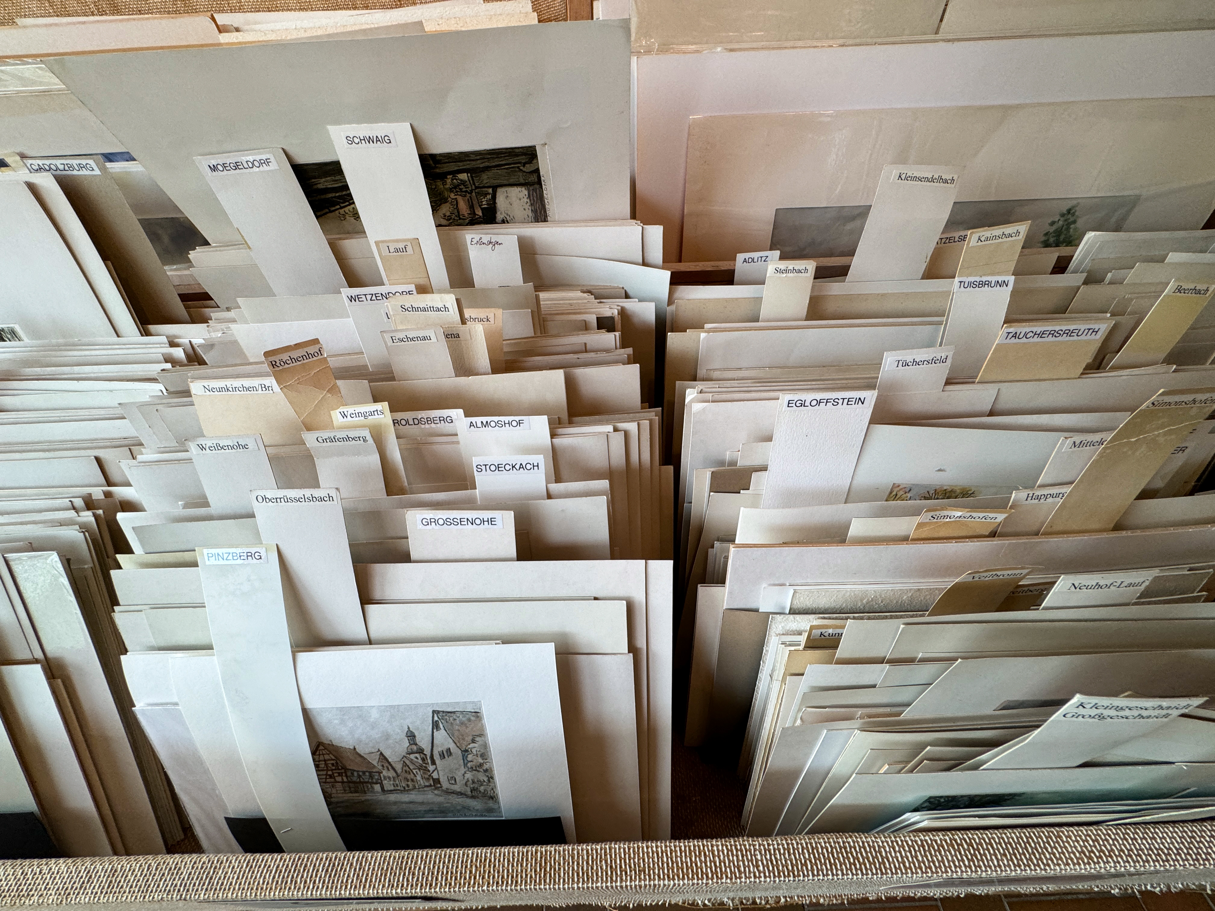 | Beschreibung | Bilder des Künstlers Fritz Lang sorientiert nach Ortschaften in seinem Atelier in Vach, Mai 2024 | ||