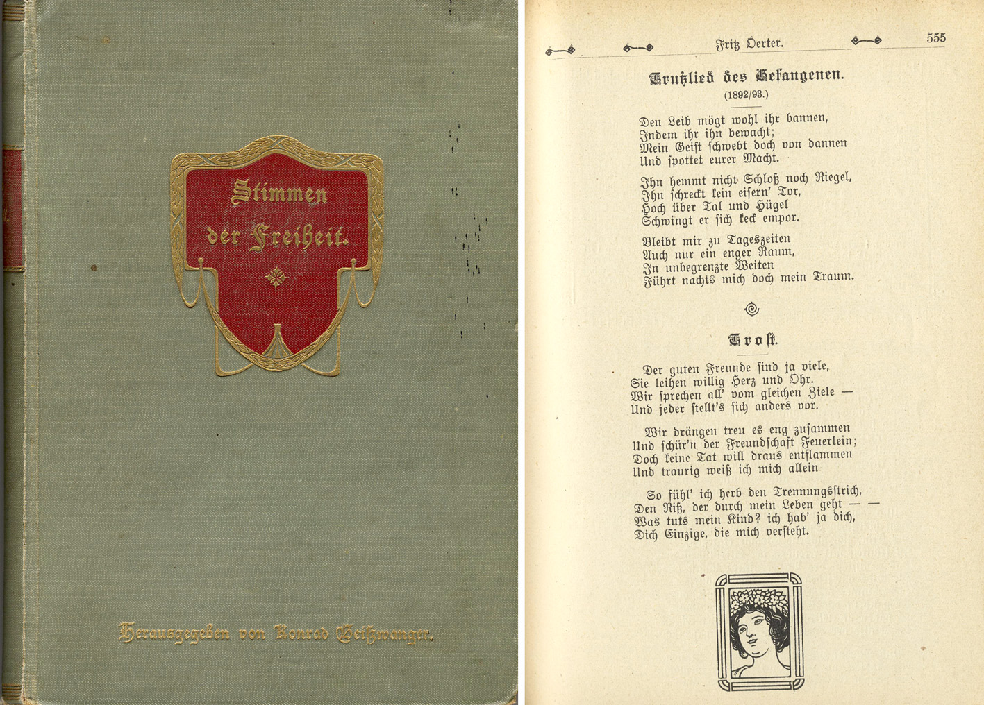 | Beschreibung | Stimmen der Freiheit, Hrsg. von Konrad Geißwanger in Nürnberg, 1914 - mit Gedichten von Fritz Oerter | ||