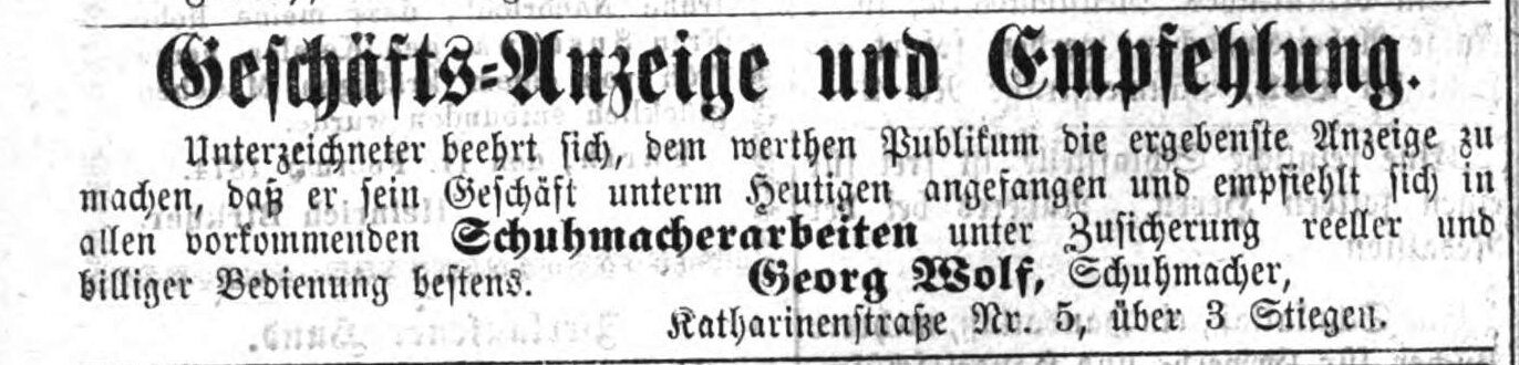 | Datei:Ftgbl. 12.02.1874 Schuhmachermeister Kathstr. 5.jpg | |||