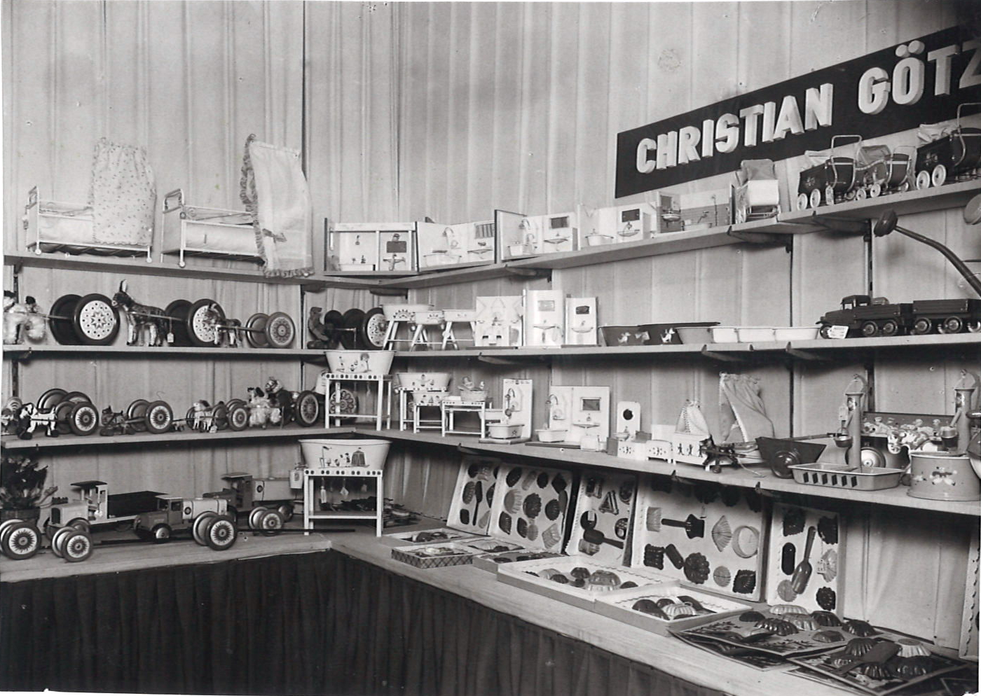 | Beschreibung | Göso-Messestand bei der ersten Spielwarenmesse in Nürnberg vom 12. - 18. März 1950 im Wieselerhaus. | ||