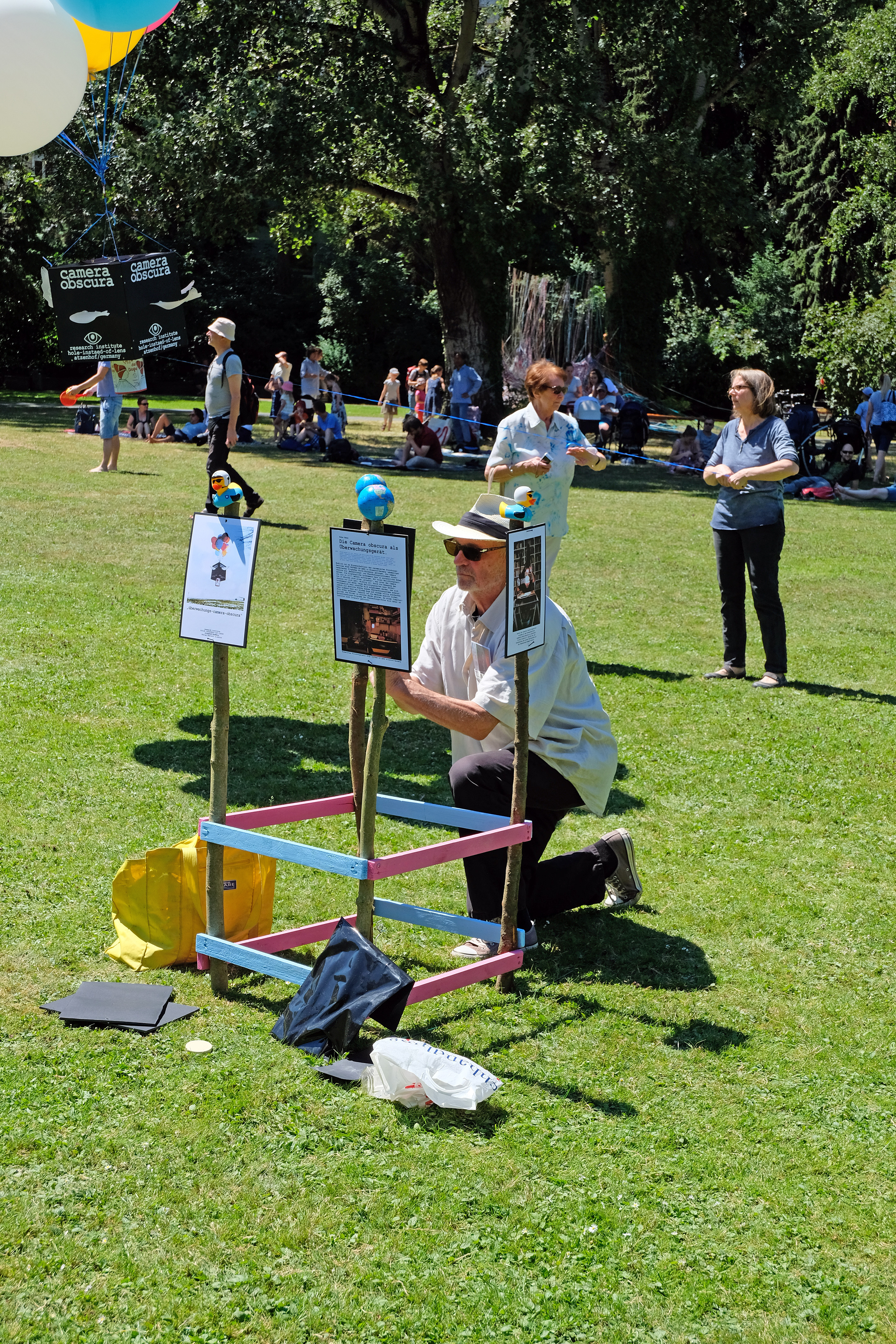 | Beschreibung | Günter Derleth mit seiner fliegenden Camera Obscura beim Luftfest im Stadtpark, 2018 | ||