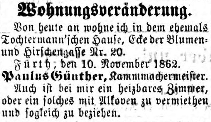 | Quellangaben | Fürther Tagblatt, 13.11.1862- online-Digitalisat der Bayerischen Staatsbibliothek | ||