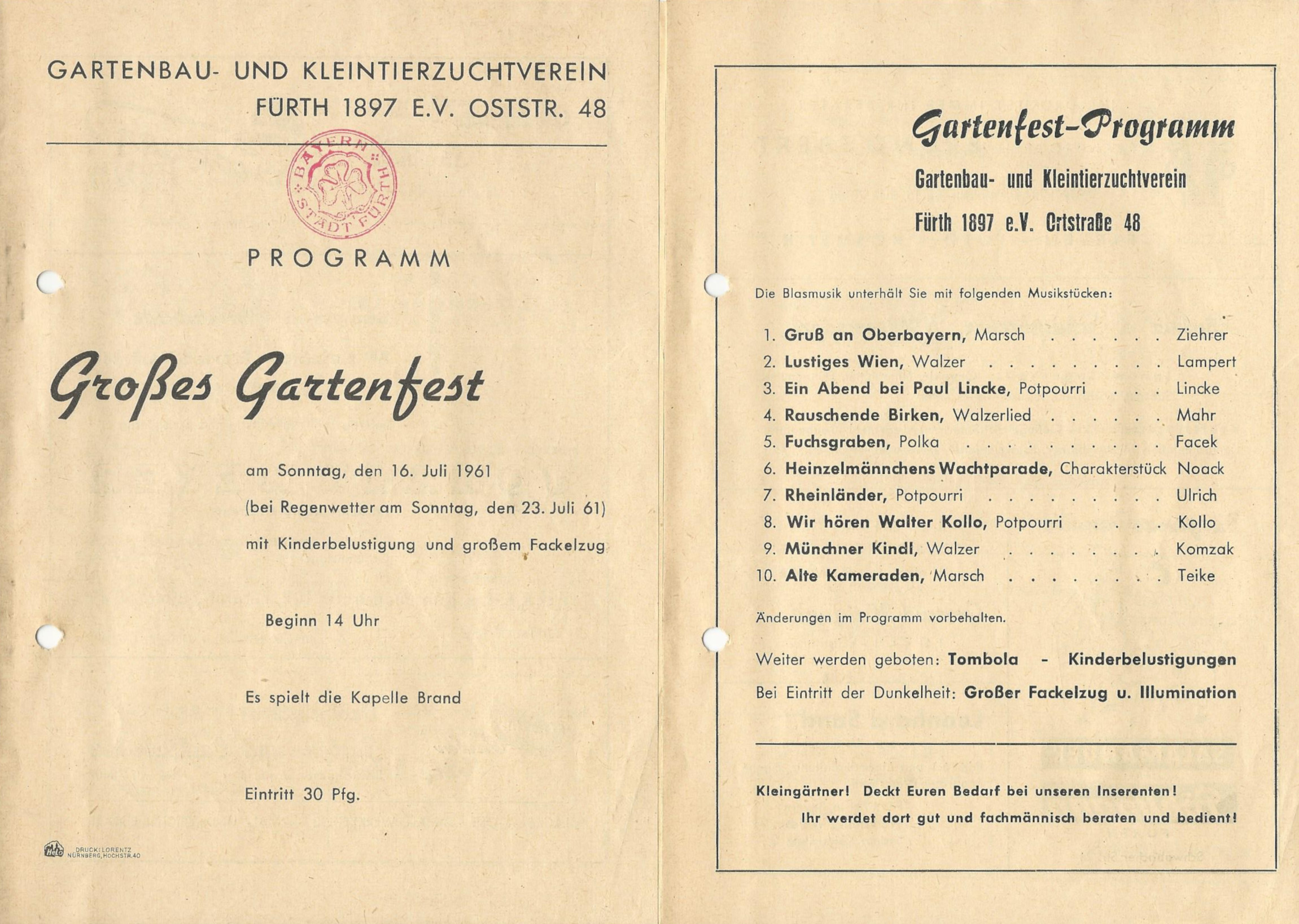 | Beschreibung | Einladung zum Gartenfest des GBV Fürth 1897 von 1961 | ||