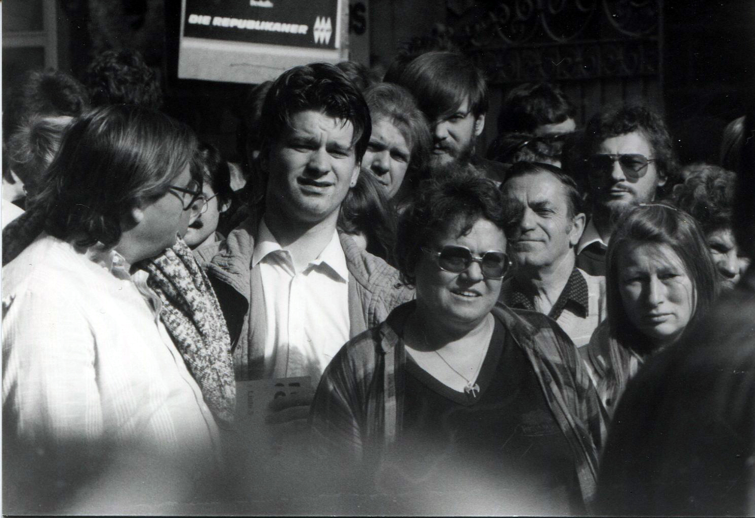 | Beschreibung | Protestaktion der Grünen in Fürth, mit Rotraut Grashey und Ingrid Psimmas, ca. 1986 | ||