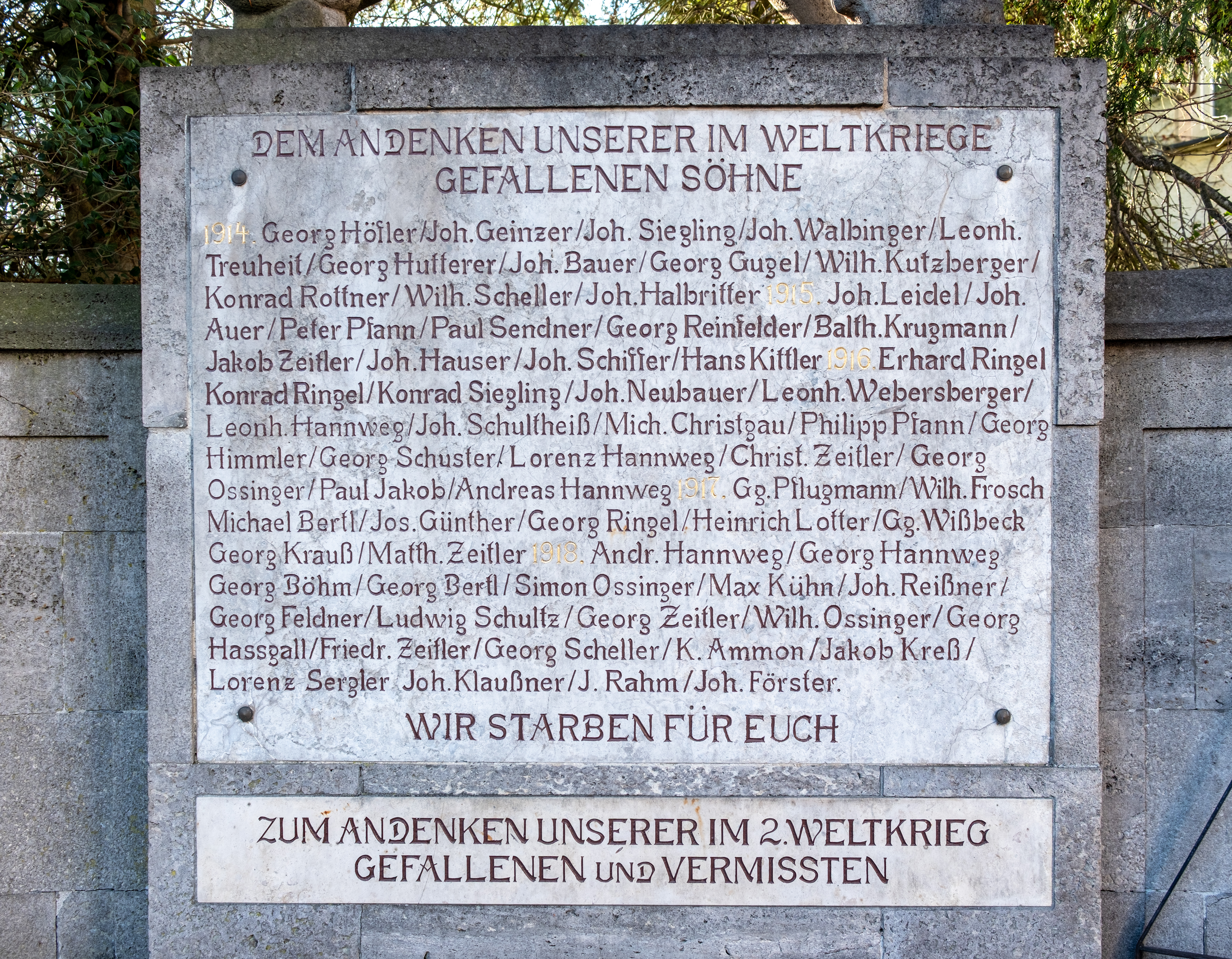 BeschreibungGedenktafel der gefallenen Vacher im ersten und zweiten Weltkrieg, Dez. 2025