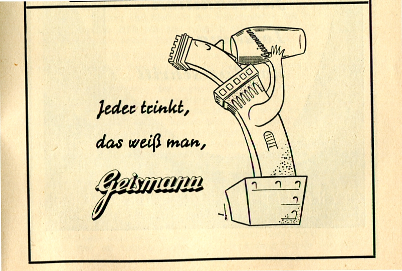| Beschreibung | Werbung der Brauerei Geismann von 1961-1965 | ||