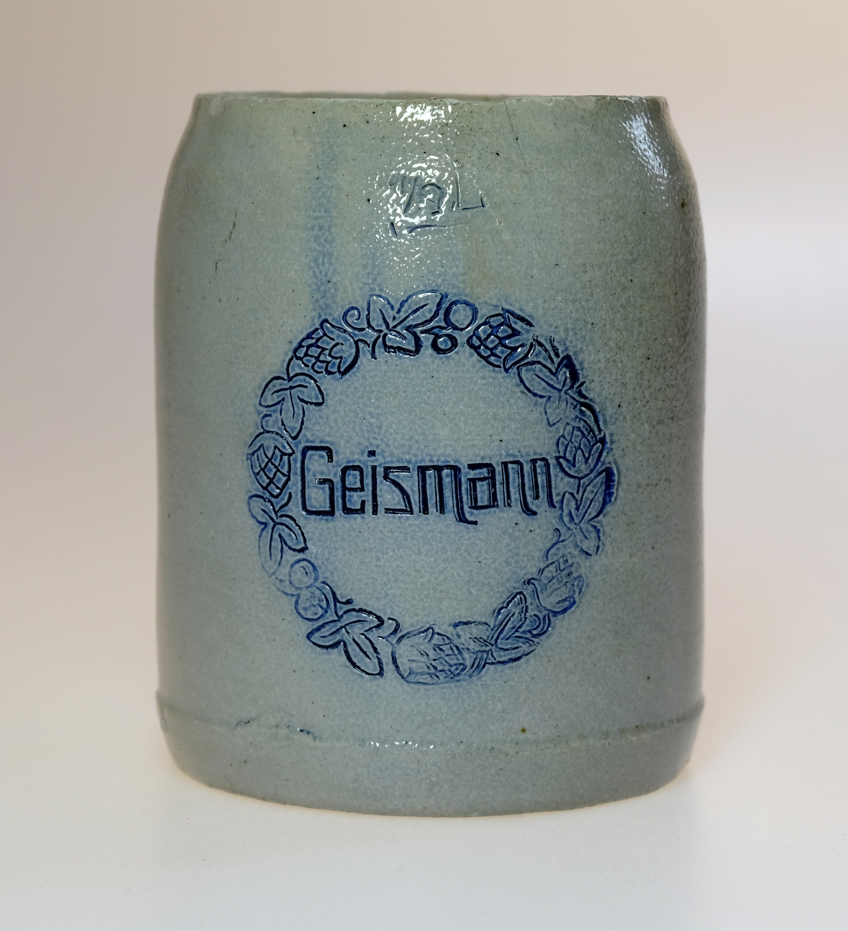 | Beschreibung | Geritzter 0,5 Liter Bierkrug der Brauerei Geismann, Juni 2021 | ||