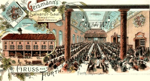 | Beschreibung | Der Geismannsaal in seiner Jugendstil-Ausgestaltung vor der Zerstörung im Zweiten Weltkrieg. Ausschnitt aus einer alten Postkarte. | ||