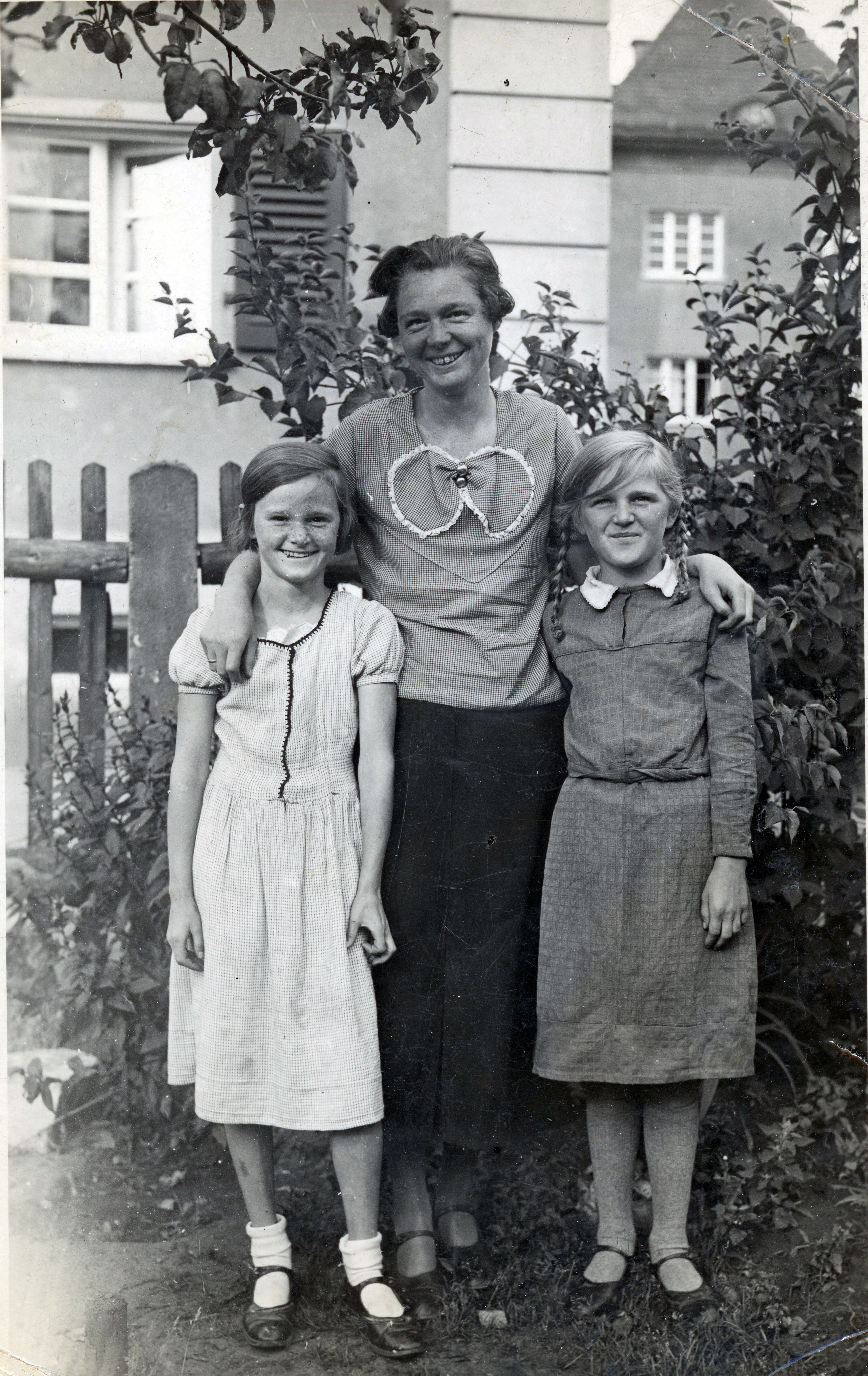 | Beschreibung | Familie Harscher, hier Mutter Margarette Harscher mit den Töchtern Hedwig und Lotte, ca. 1940 | ||