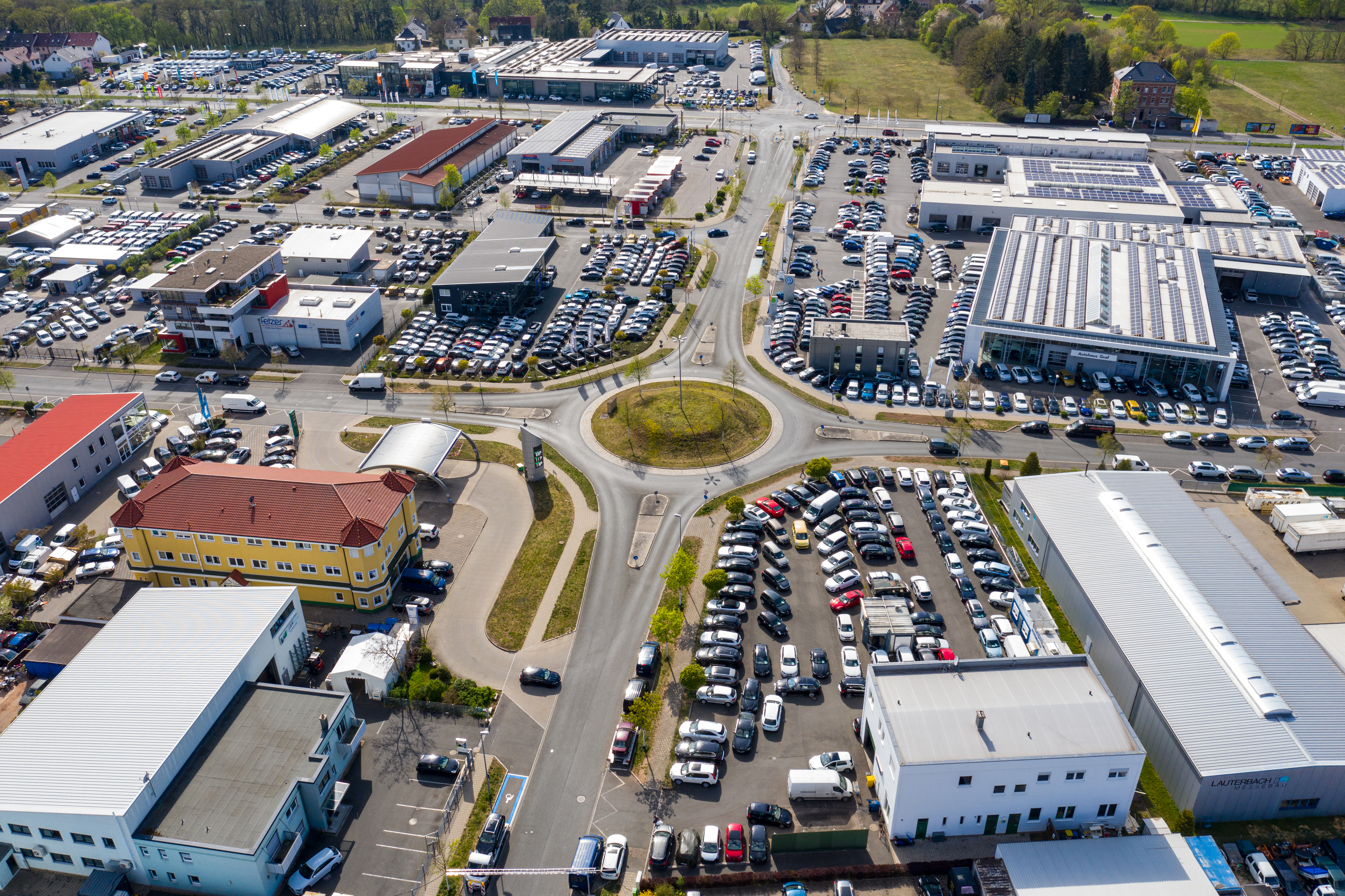 | Beschreibung | Kreisverkehr Georg-Benda-Straße / Benno-Strauß-Straße im April 2020 | ||