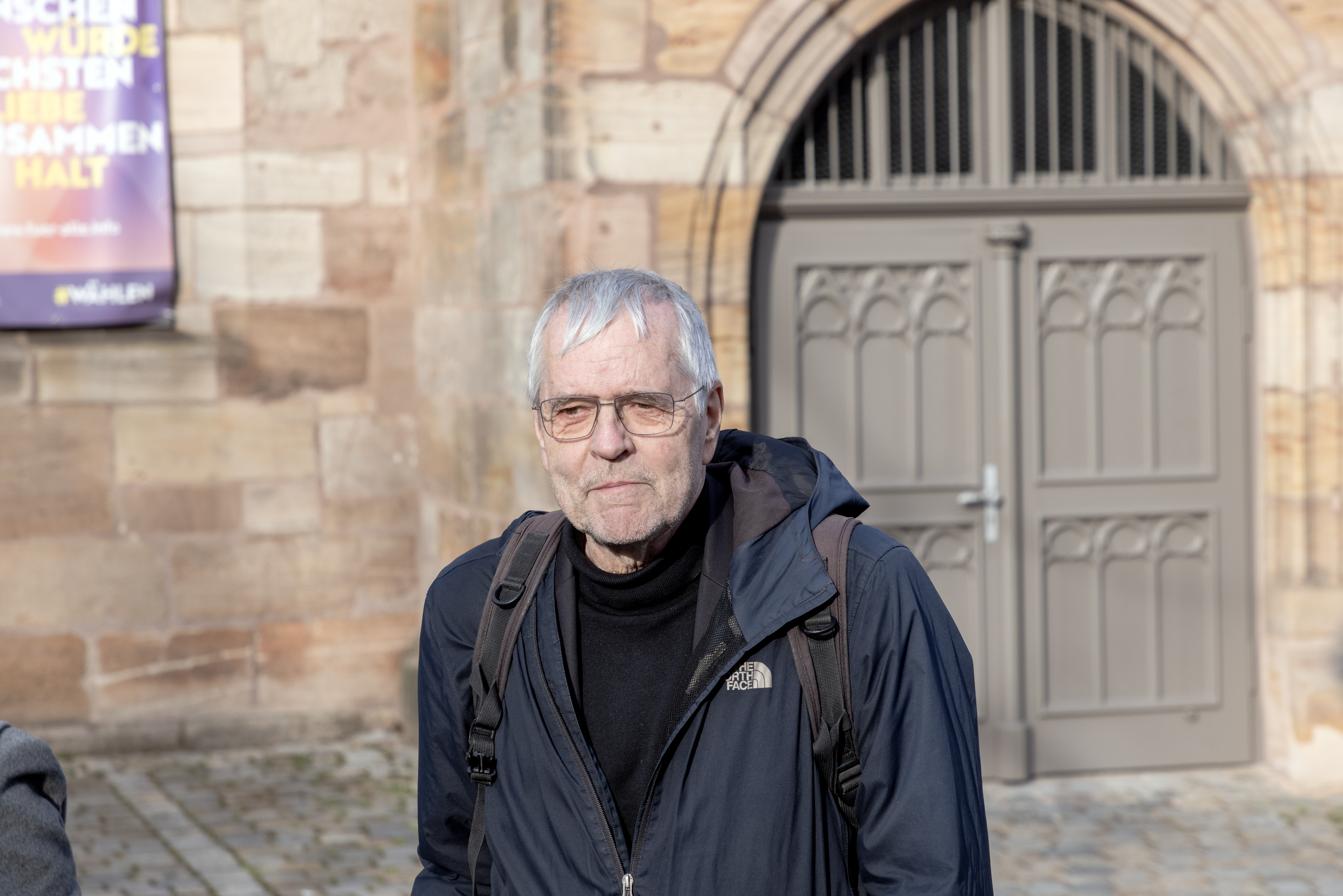 Prof. Dr. Großmann vor der St.-Michael-Kirche, März 2026 Urheber: Kamran Salimi<br>Erstellungsdatum: 13. März 2026<br>Lizenz: CC BY-SA 4.0