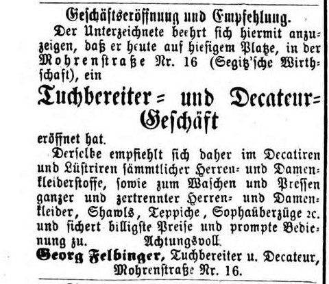 BeschreibungGeschäftseröffnung im Segitz´schen Haus, Fürther Tagblatt 6.10.1868
