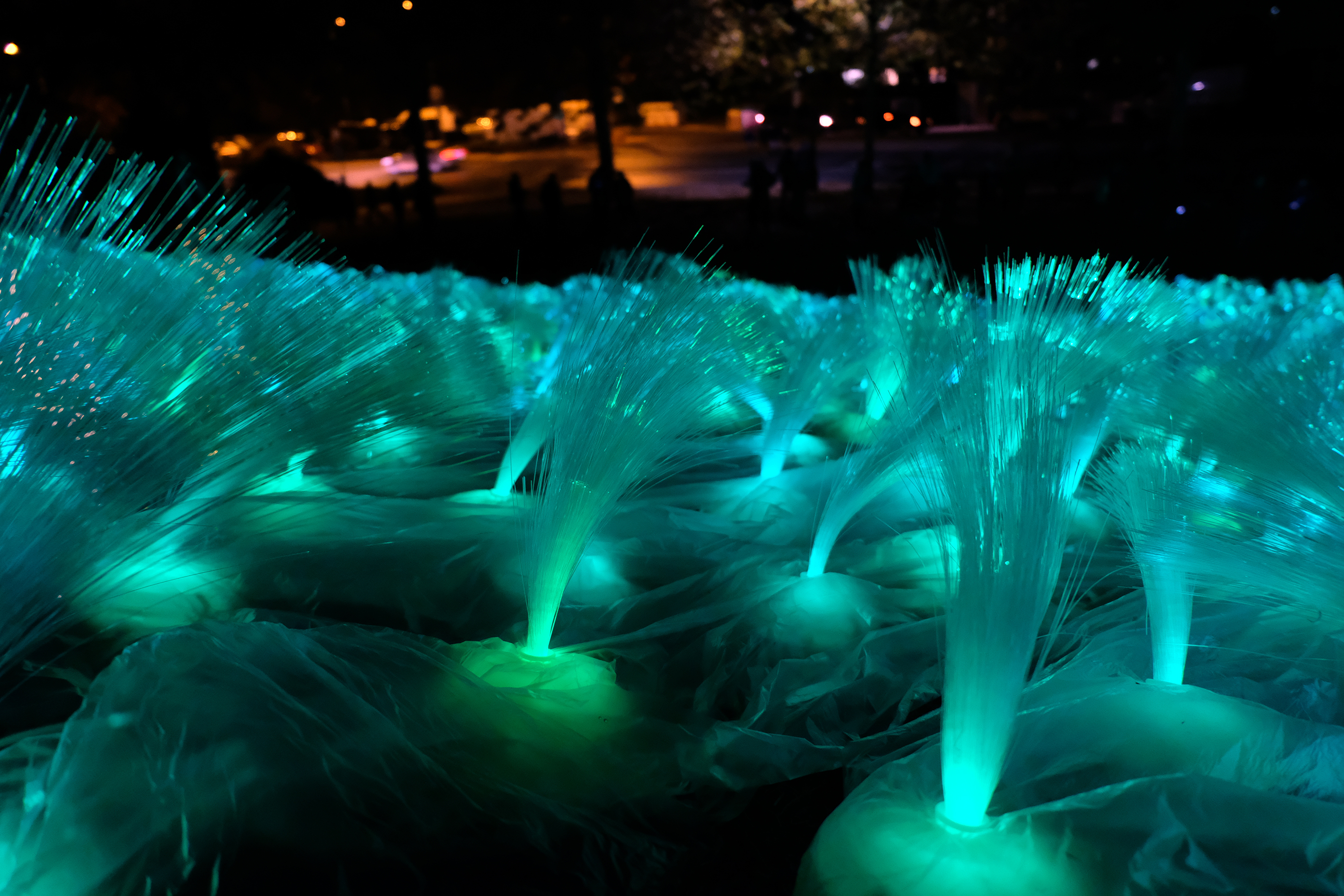 | Beschreibung | Lichtinstallation vor der Stadthalle während der Veranstaltung Fürther Glanzlichter anlässlich der Feierlichkeiten "200 Jahre eigenständig" der Stadt Fürth, 2018 - Installation von der Künstlerin Petra Krischke | ||