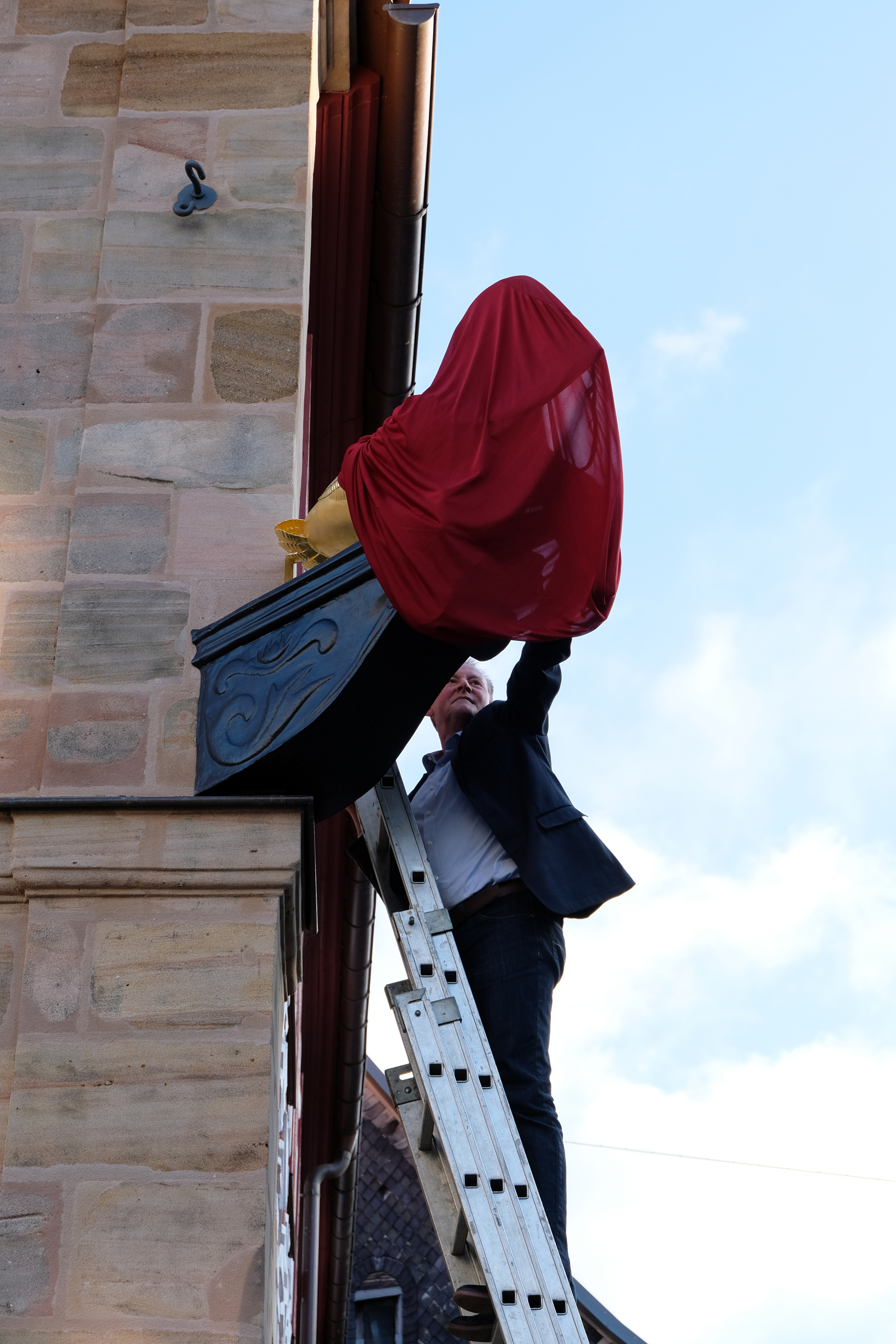 | Beschreibung | Enthüllung der Replik des Goldenen Schwans an der Gaststätte am Marktplatz, Nov. 2019 | ||