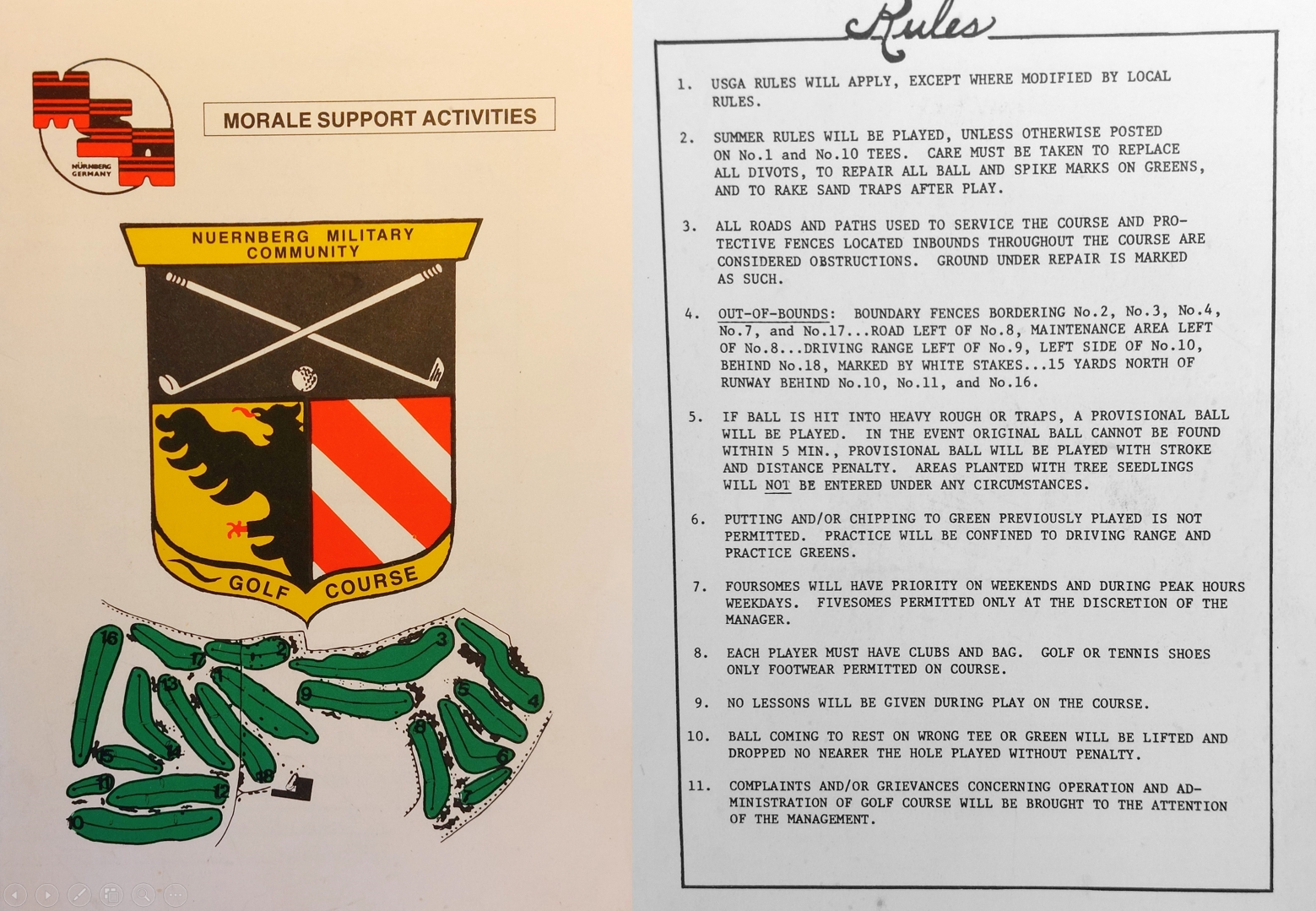 | Beschreibung | Scorecard des Nuernberg Golf Club mit Platzregeln. | ||