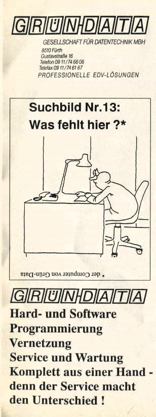 | Beschreibung | Werbung der Firma Grün-Data in der Schülerzeitung Die Pennalen Nr. 3 1990 | ||