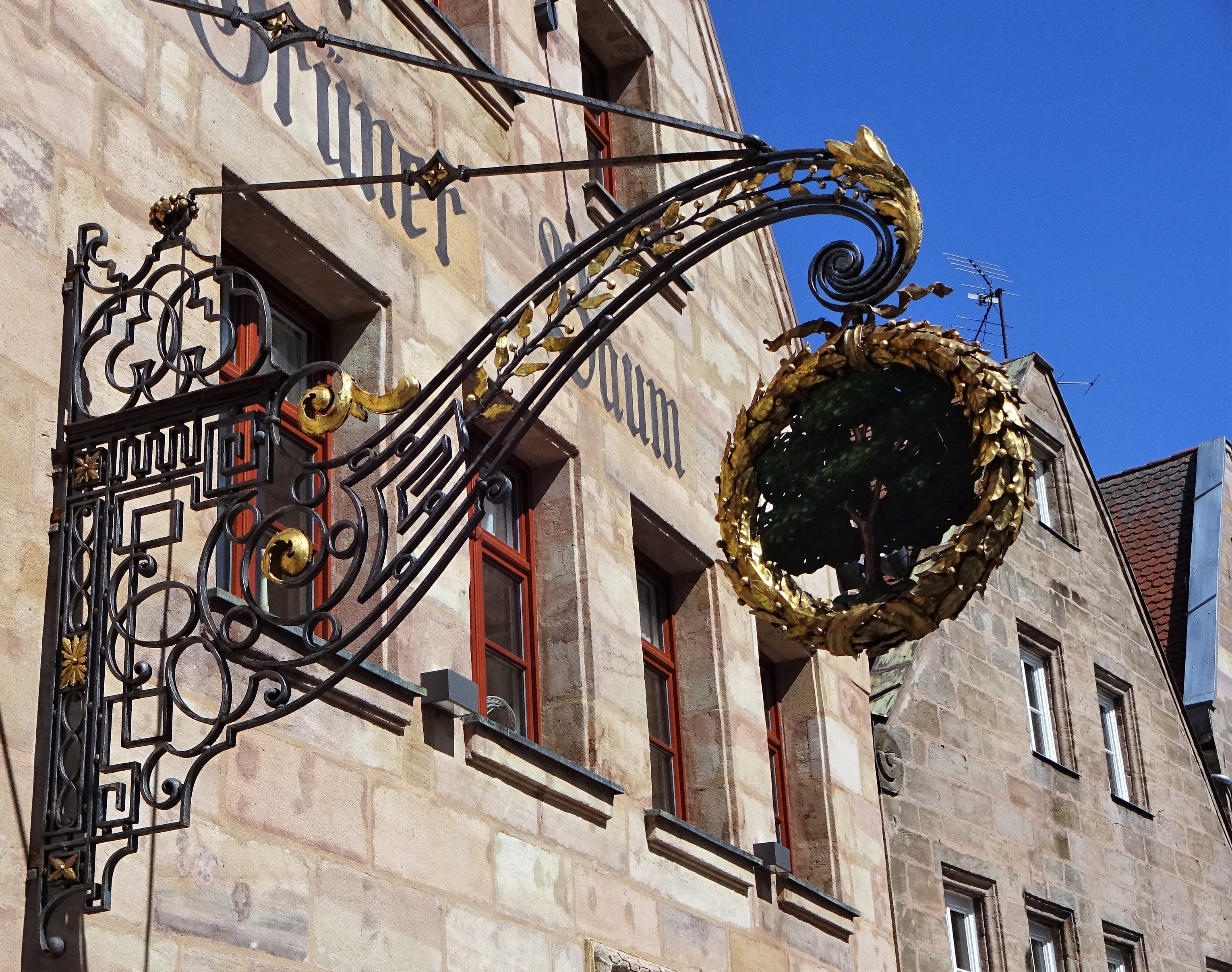 | Beschreibung | Kunstschmiede Meisterstück von 1911: Ausleger vom Restaurant Grüner Baum | ||